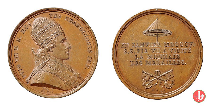 ombrellone = EN JANVIER MDCCCV = S • S. PIE VII A VISITE' = LA MONNAIE = DES MEDAILLES = chiavi decussate