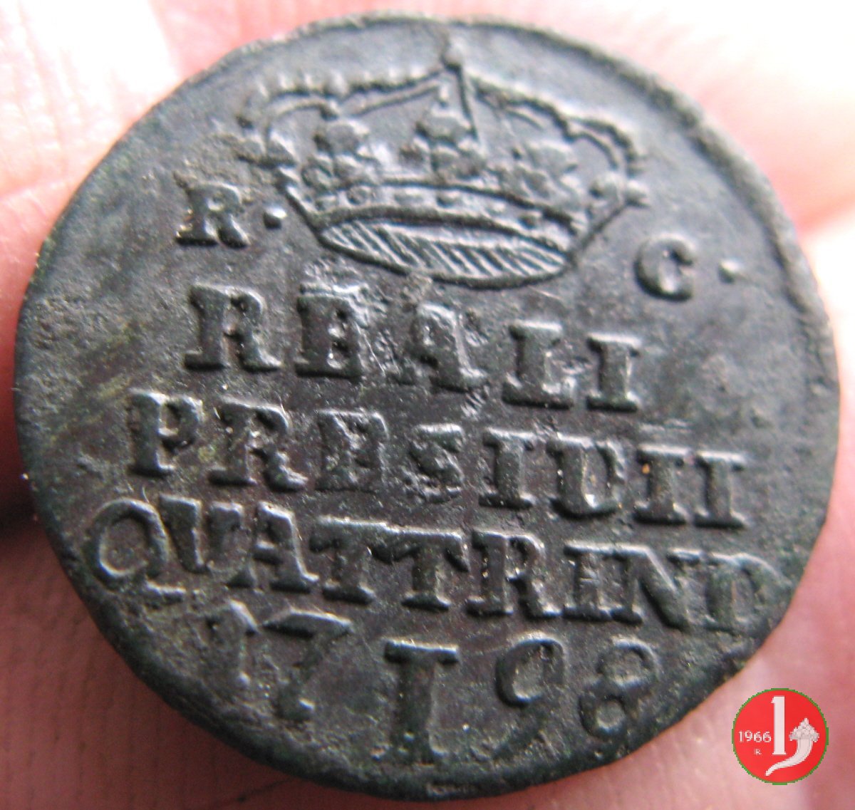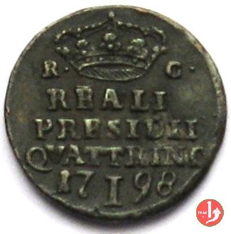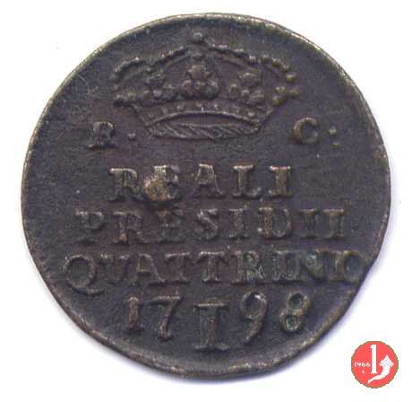 Busto di Ferdinando IV volto a destra. Intorno FERDIN • IV • D • G • SICILIAR • REX. Sotto al busto indicazione dell'incisore P •. Nel campo su quattro righe REALI/ PRESIDI/ QVATTRINO/ I. Sopra, ai lati della corona le lettere C • e C del mastro di zecca. In basso, il millesimo 1782 diviso in due dal valore I.