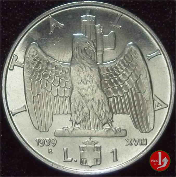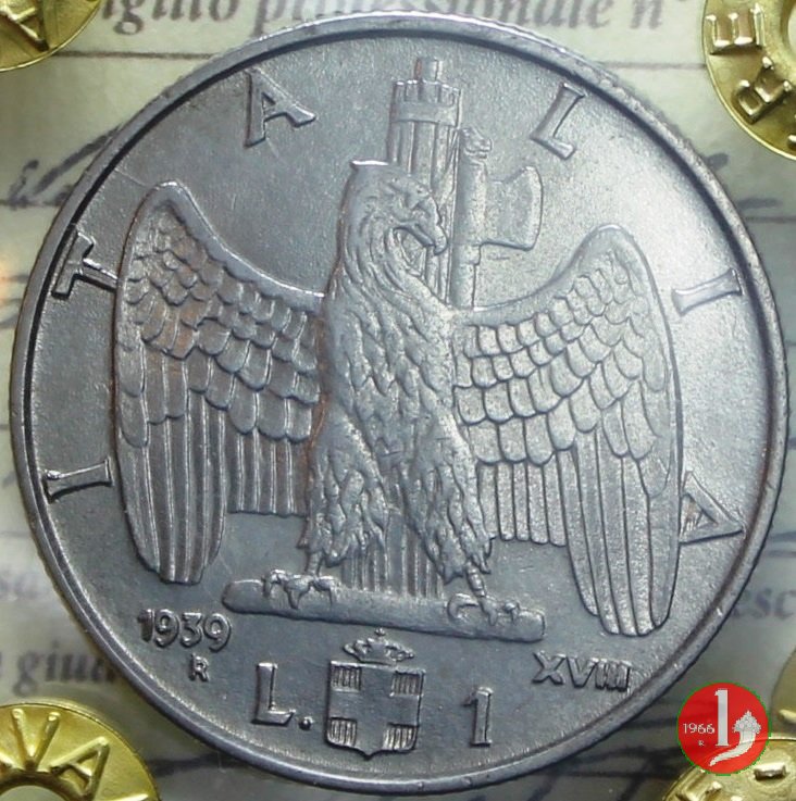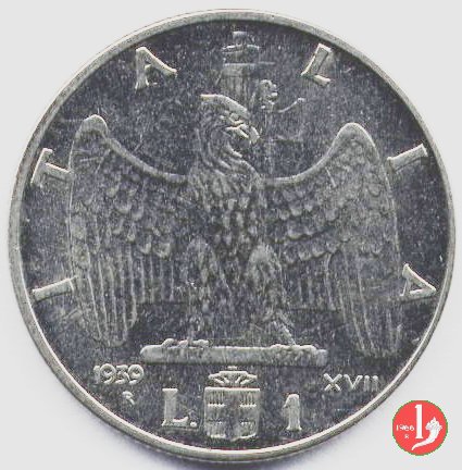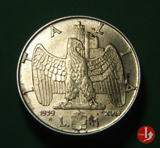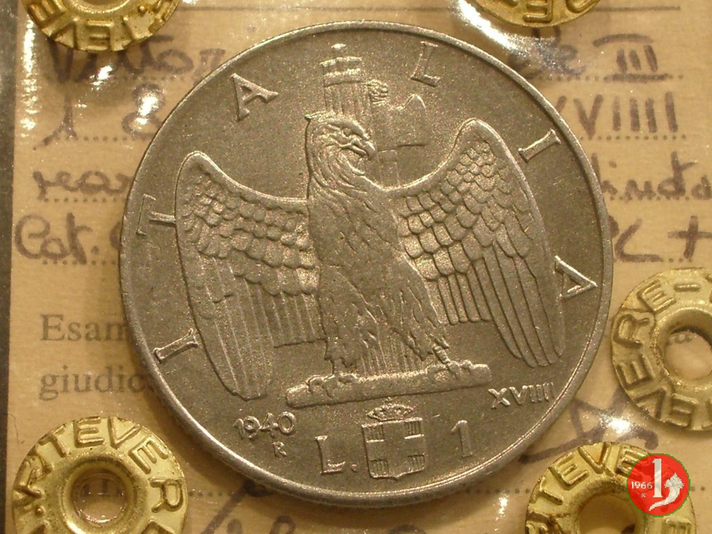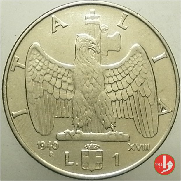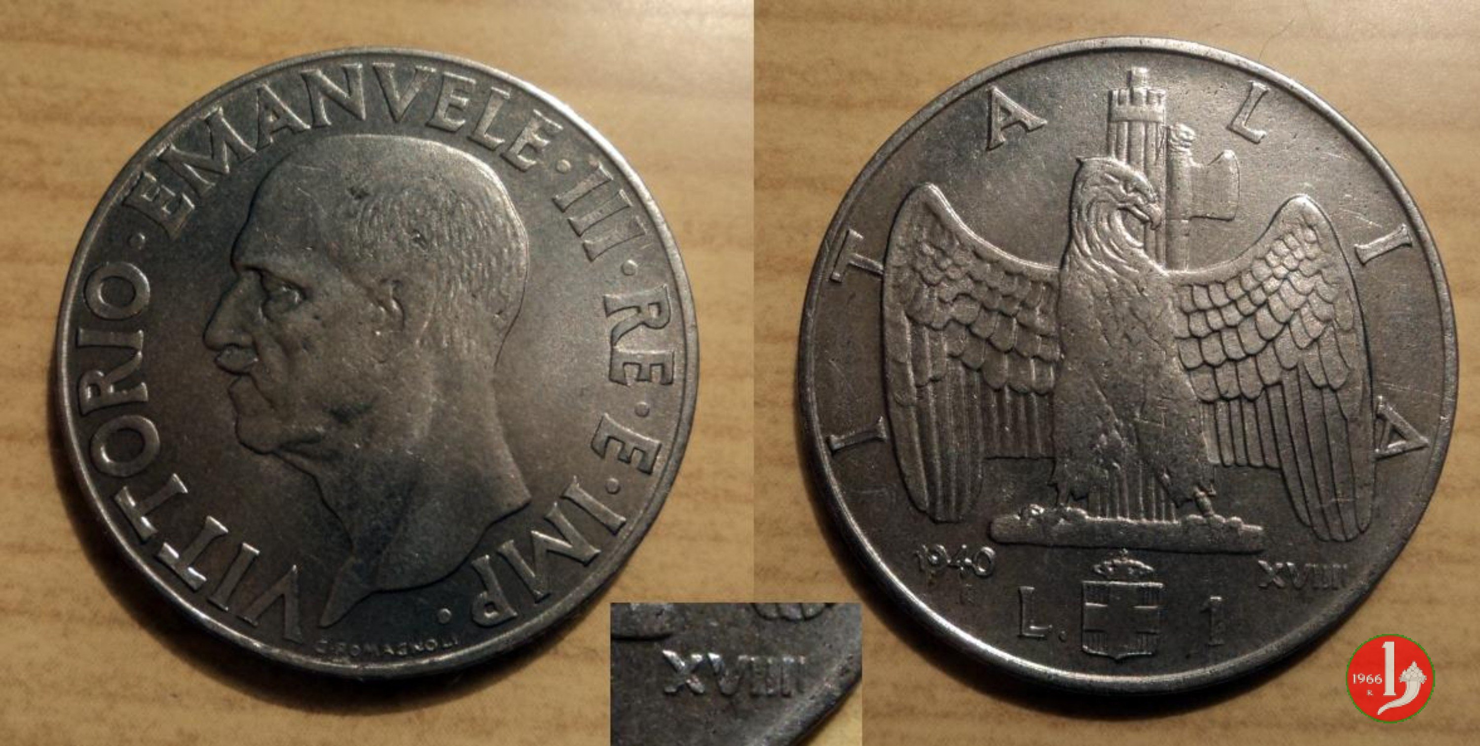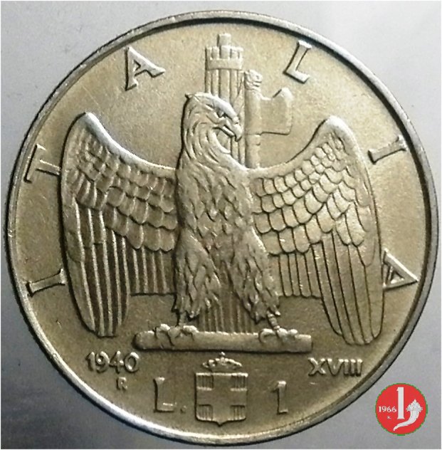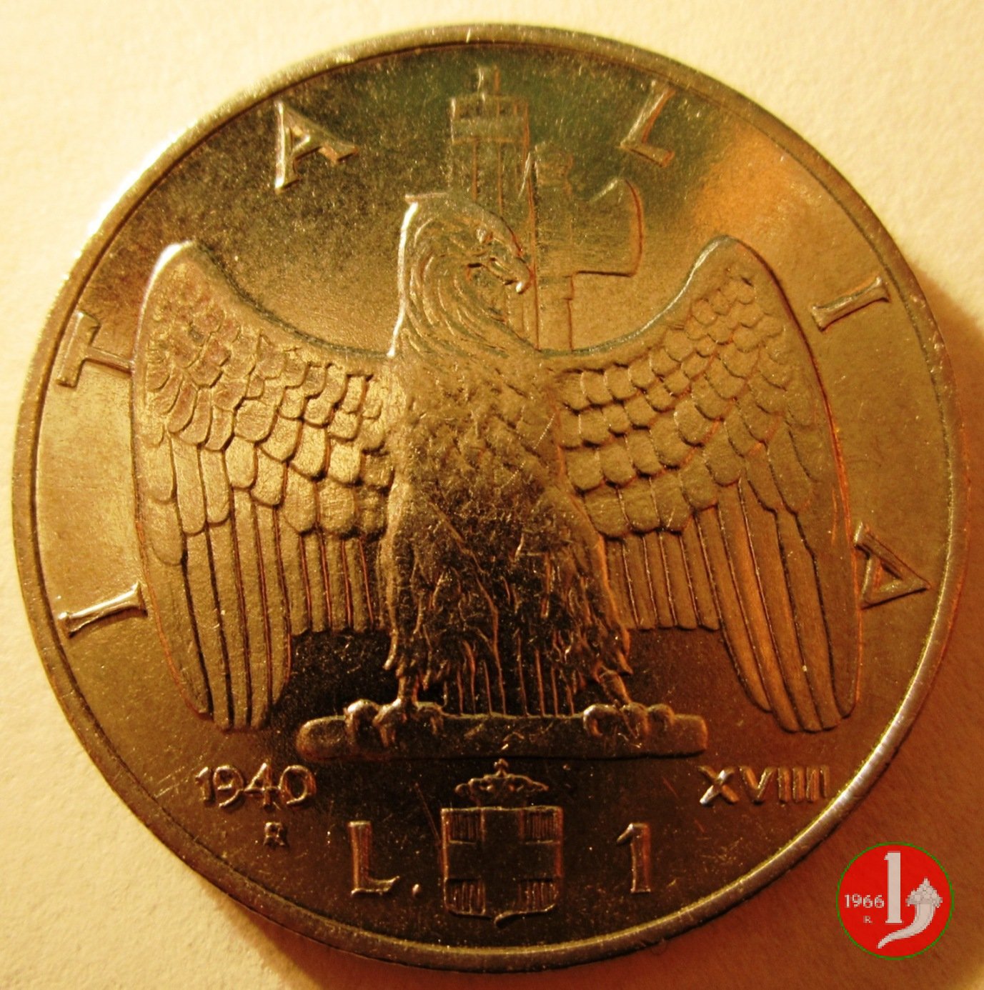 Parlano di questa moneta sul forum in: 1 e 2 lire Aquila (serie IMPERO), differenza sui conii, 1 Lira 1940 Impero, XVIIII.