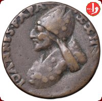 | Medaglia di restituzione fusa, realizzata alla fine del XVI secolo. Questa medaglia è stata realizzata con il dritto differente da quelle della stessa serie, l'ipotesi piú verosimile sembrerebbe essere quella della sostituzione dei dritti per accidentale rottura dell'impronta utilizzata per la fusione. | ||||||||||||