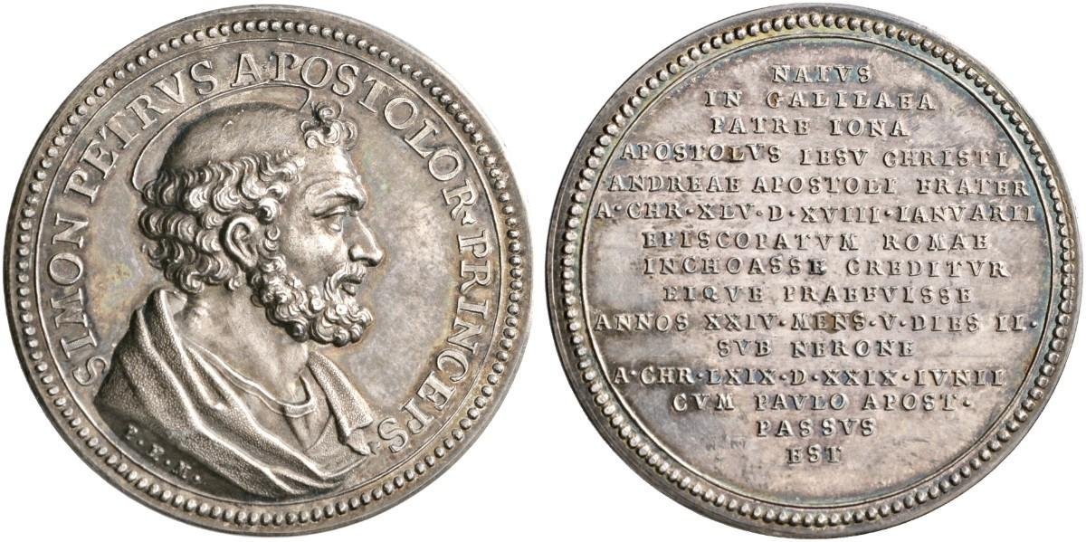 | Medaglia coniata dalla Serie di restituzione Papale, comprendente 255 medaglie di restituzione Papali, realizzate a Norimberga tra il 1700 ed il 1745 dal Governatore della Zecca di Franconia Caspar Gottlieb Lauffer. | |||||||