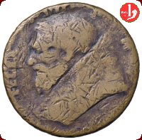 Medaglia di restituzione fusa, realizzata nella seconda metà del XVI secolo. Questa medaglia è stata realizzata con il dritto differente da quelle della stessa serie, l'ipotesi piú verosimile sembrerebbe essere quella della sostituzione dei dritti per accidentale rottura dell'impronta utilizzata per la fusione. | ||||||||||||