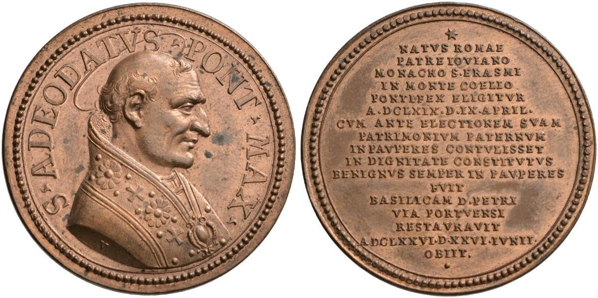 | Medaglia coniata dalla Serie di restituzione Papale, comprendente 255 medaglie, realizzate a Norimberga tra il 1700 ed il 1745 dal Governatore della Zecca di Franconia Caspar Gottlieb Lauffer. | |||||