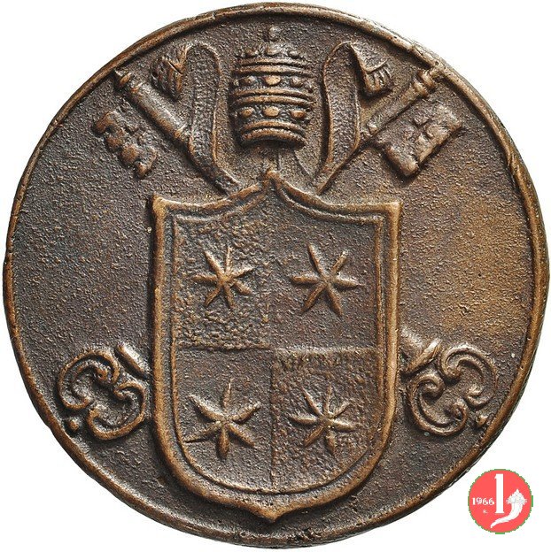 Stemma Papale quadripartito con quattro stelle nei campi, su chiavi decussate e coronato da triregno