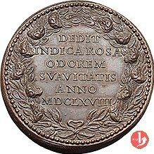 Medaglia straordinaria coniata, emessa il 12-02-1668, a ricordo della Beatificazione di Rosa da Lima. Variazione del D. | |||||