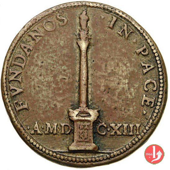Medaglia straordinaria coniata, emessa nel 1613, probabilmente a ricordo del progetto e dell'incarico conferito allo scultore Guglielmo Berthelot, per la realizzazione della colonna con la Statua della B. V. Maria posta di fronte alla Basilica di Santa Maria Maggiore a Roma.