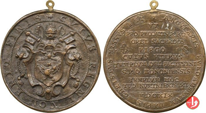 Medaglia straordinaria fusa privatamente, emessa il 15-08-1619 per ricordare la posa della Prima pietra nella Chiesa di Santa Maria Lacrimosa in Bologna.