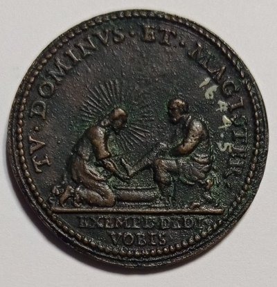 Medaglia annuale della lavanda coniata, emessa il 13-04-1645 per ricordare la celebrazione in Coena Domini del Giovedí Santo.