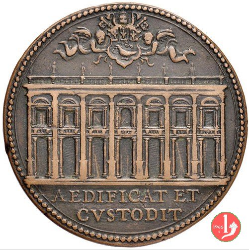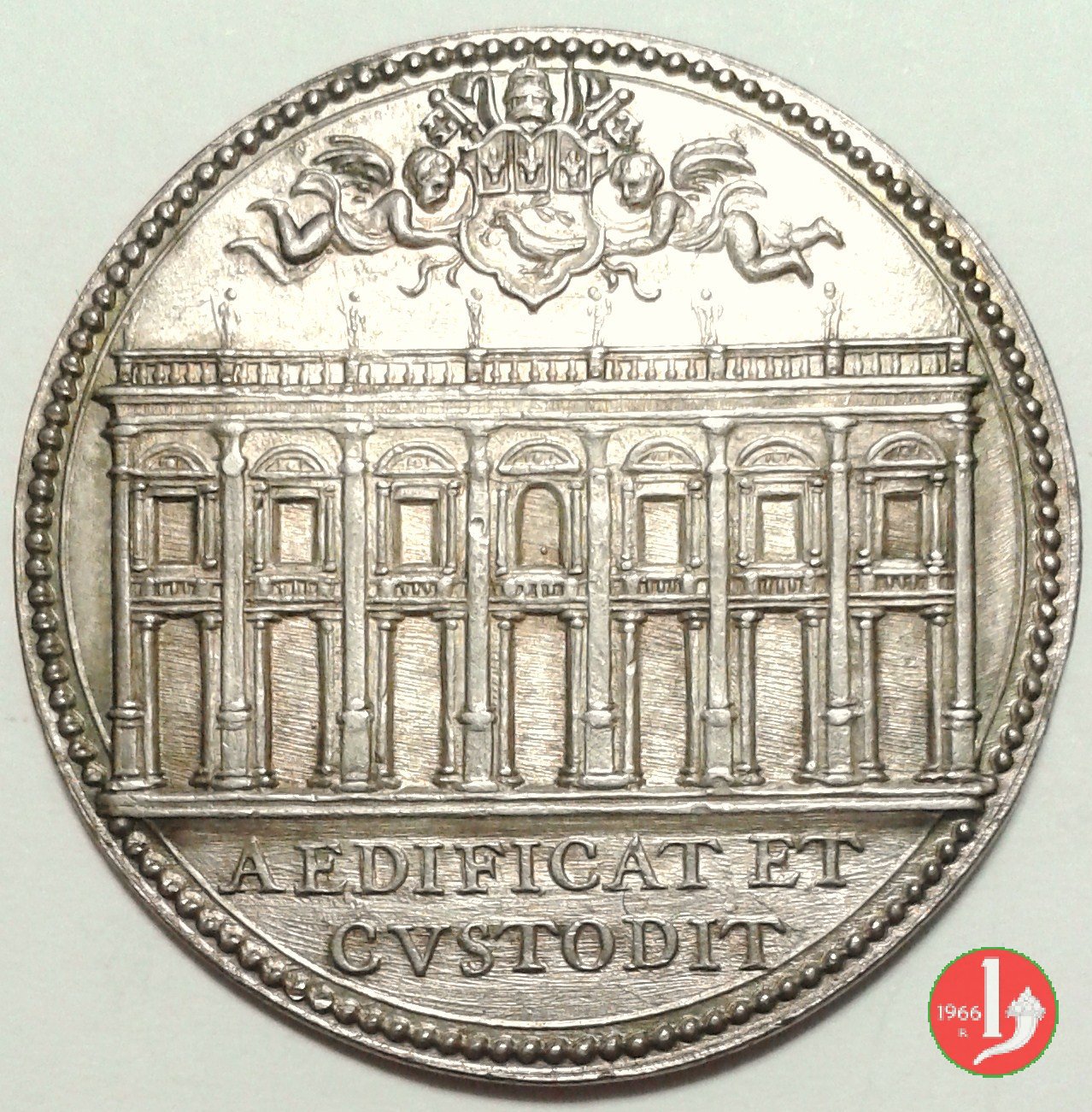 Celebra il completamento, con l'edificazione dell'ultimo edificio del complesso della Piazza Campidoglio su progetto originario di Michelangelo e portato a compimento dagli Arch. Giacomo Della Porta, Girolamo e Carlo Rainaldi.