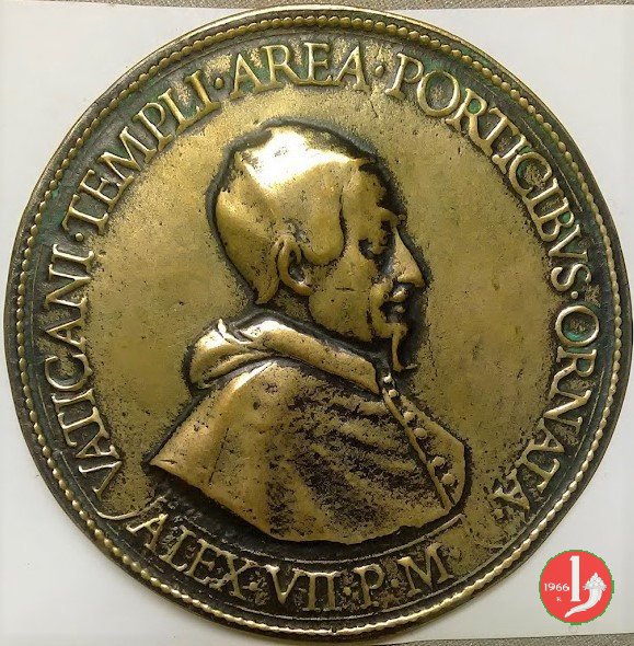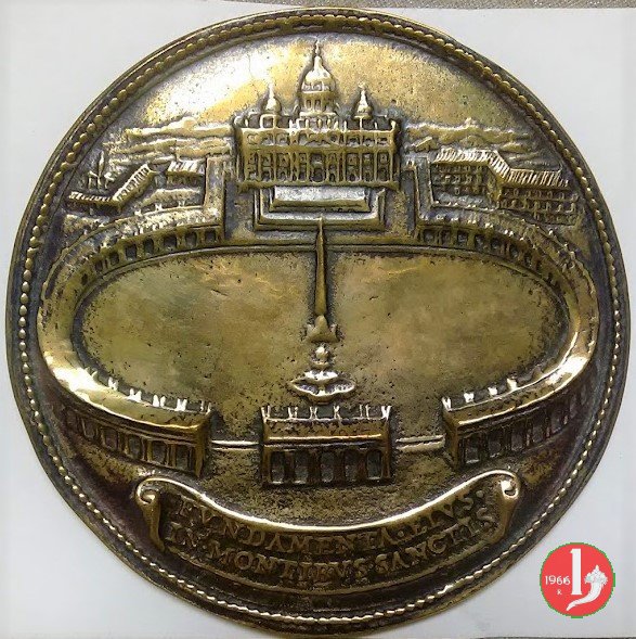 | Medaglia fusa, riproduzione moderna del 1982 della Medaglia per la costruzione del Porticato del Bernini in Piazza San Pietro. Presenta sul contorno incisione con l'anno di esecuzione: 1982 MMA. | |||