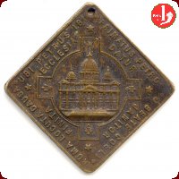 | Medaglia romboidale coniata, iconografica della vita di Leone XIII e realizzata per ricordare il Giubileo Sacerdotale. | |||||