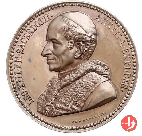 | Medaglia coniata, realizzata nel 1887 in Olanda, per ricordare il Giubileo Sacerdotale di Leone XIII. | ||||||