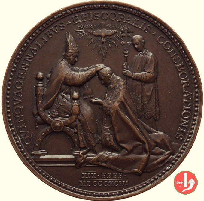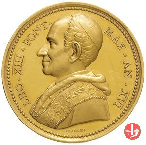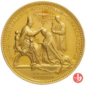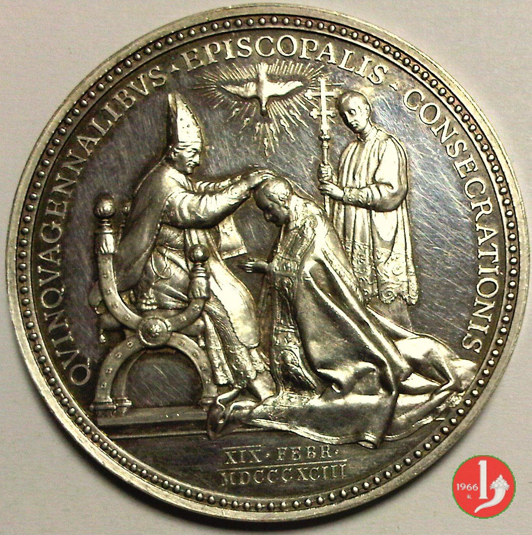 Medaglia annuale coniata, emessa il 29-06-1893, a ricordo della Consacrazione Episcopale di Leone XIII. I dati di tiratura sono presunti e non sono confermati dai documenti ufficiali (non ancora reperiti). | ||||||||