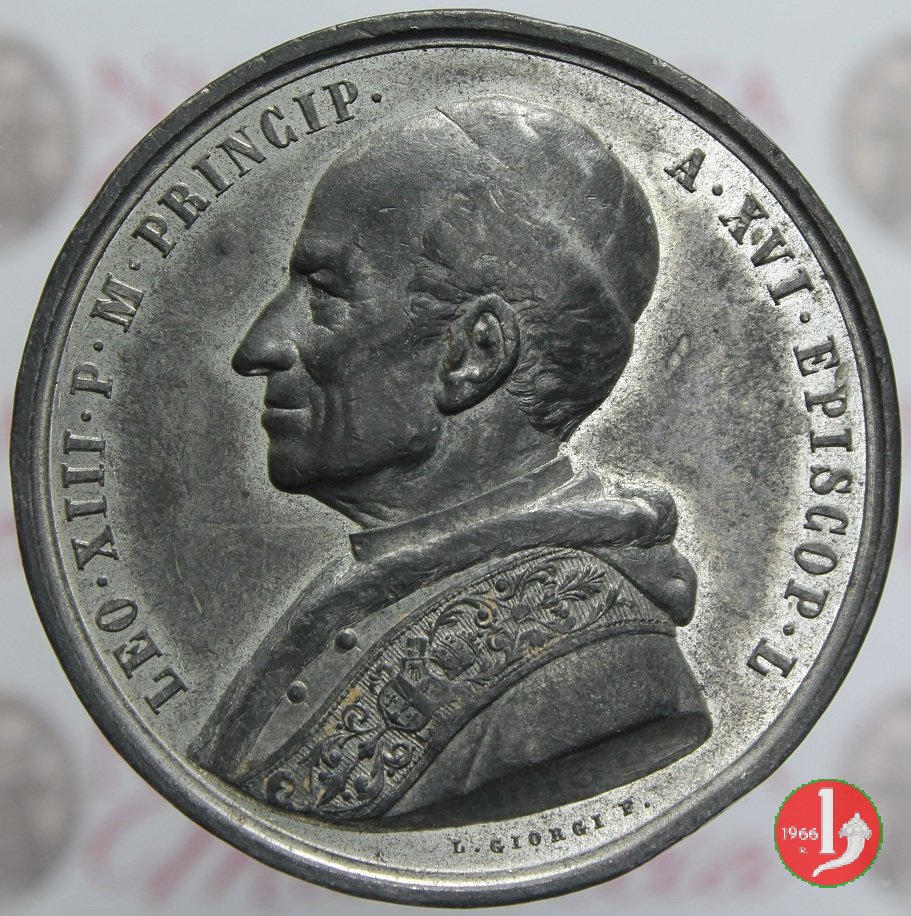 | Medaglia straordinaria coniata, realizzata nel 1893 e distribuita come ricordo ai Pellegrini giunti a Roma per cebrare il Giubileo Episcopale del Pontefice. | |||||