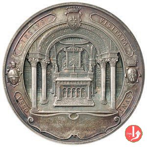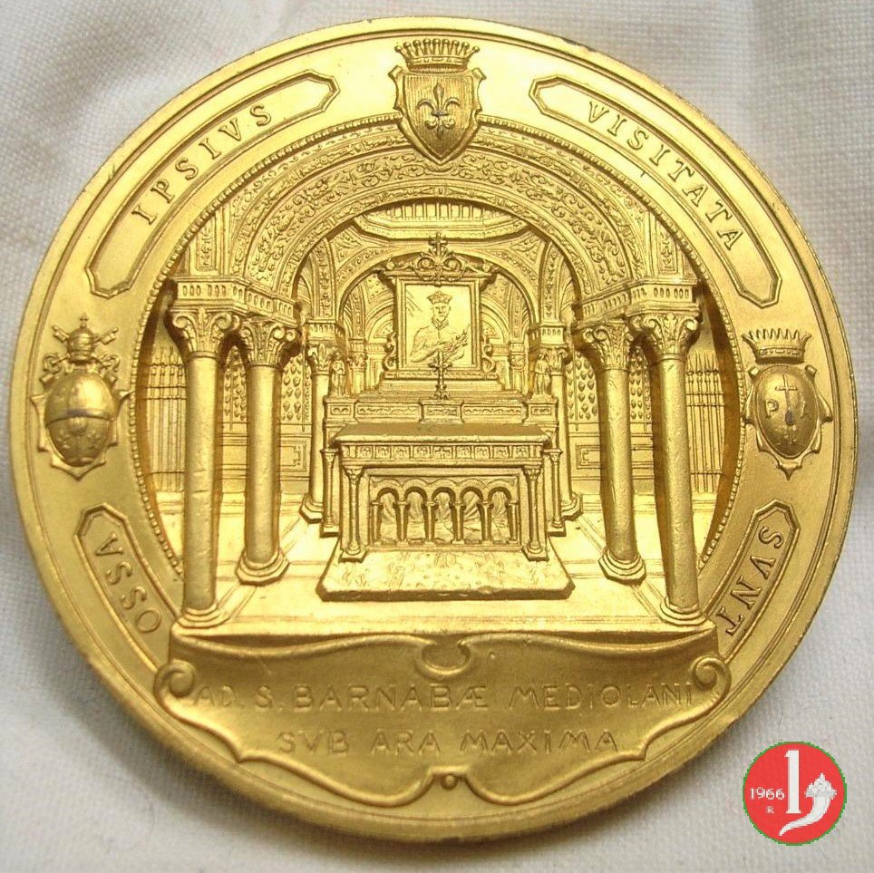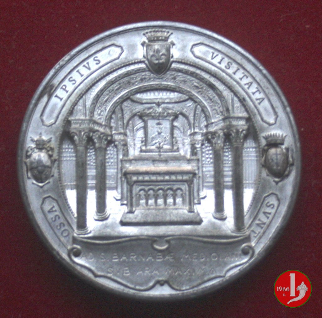 nel campo, entro cerchio perlinato: vista interna della chiesa di S. Barnaba in Milano con l'altare maggiore che conserva un'urna di vetro contenente il corpo incorrotto del fondatore dei Barnabiti, Sant'Antonio Maria Zaccaria