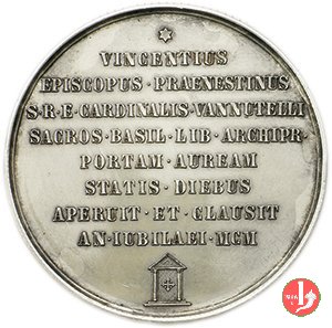 Medaglia straordinaria coniata, emessa per ricordare l'apertura e la chiusura dell'aurea Porta Santa della Basilica Liberiana da parte del Card. Vannutelli.