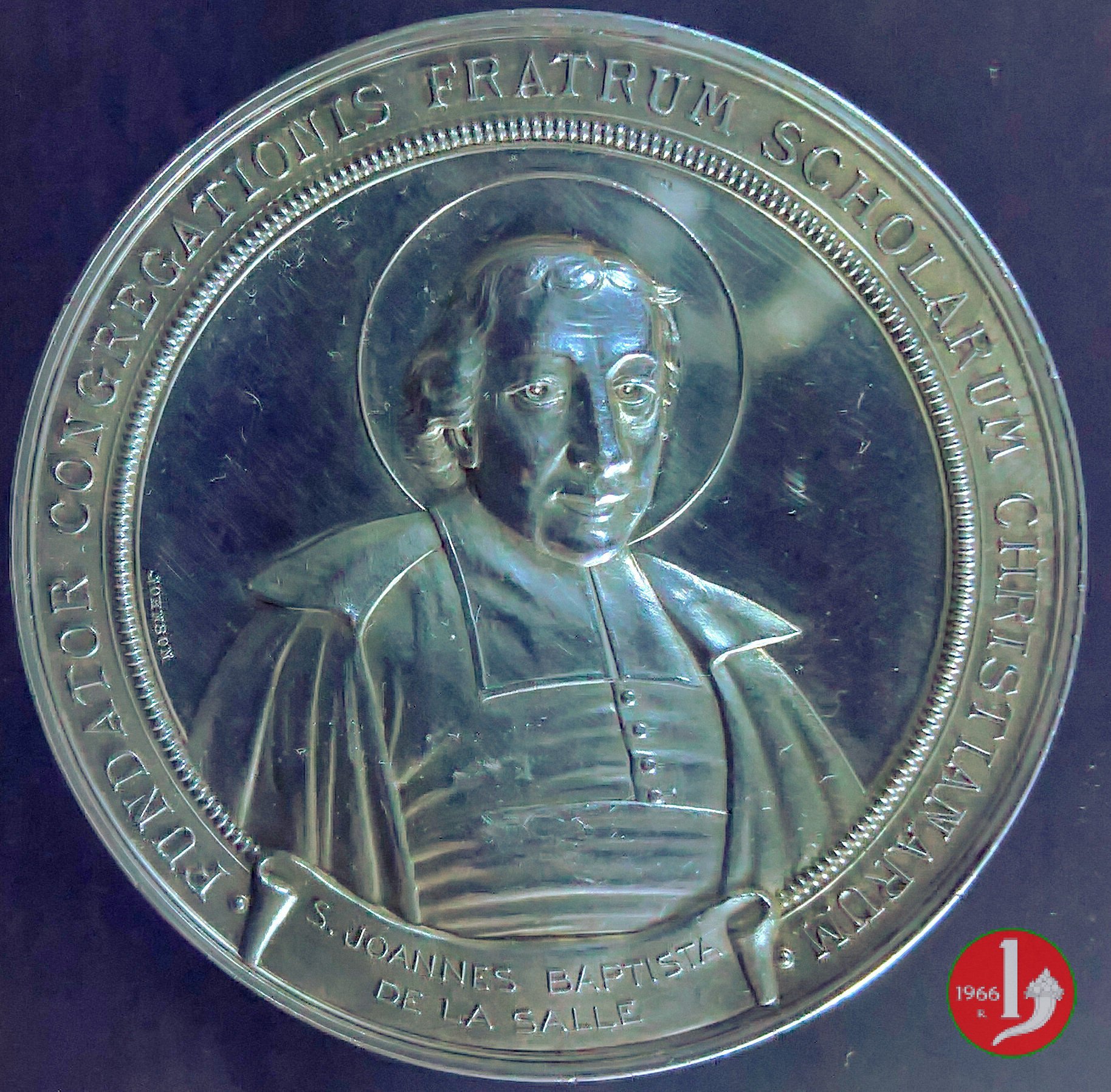 Medaglia coniata, emessa il 24-05-1900, dallo Stabilimento Stefano Johnson di Milano, per ricordare la canonizzazione di Jean Baptiste de la Salle.