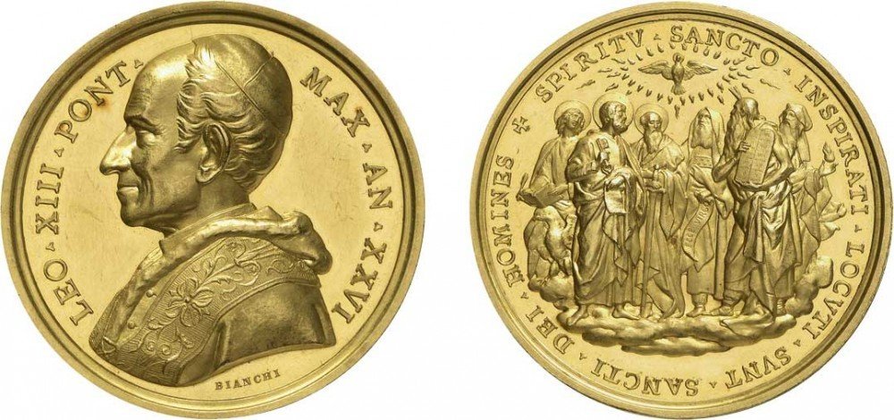 Medaglia annuale coniata, emessa il 29-06-1903, per ricordare l'istituzione della Pontificia Commissione Biblica il 30 ottobre 1902.