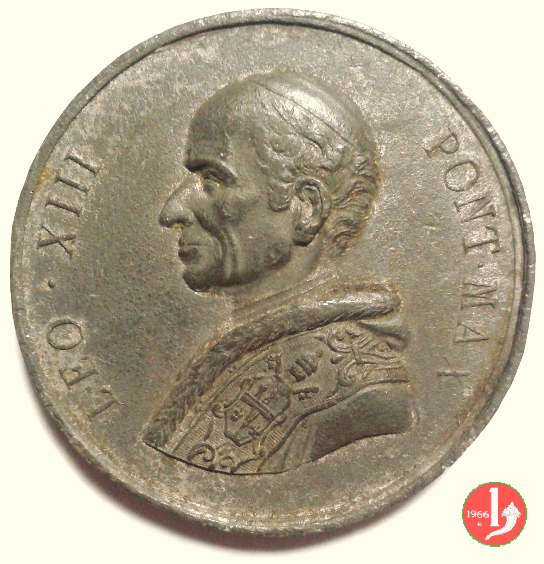 Medaglia coniata, emessa il 28-09-1883, per ricordare il Congresso dei Sacerdoti Italiani a Roma e l'udienza concessa alle delegazioni diocesane. Derivata dalla precedente e probabilmente distribuita anche per altri pellegrinaggi.
