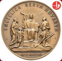 Medaglia coniata senza data, realizzata probabilmente nel 1991 per ricordare il centenario di promulgazione dell'Enciclica Rerum Novarum di Papa Leone XIII.