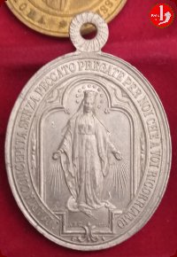 Medaglia ovale coniata, realizzata nel 1904 a ricordo del cinquantesimo anniversario della proclamazione del dogma dell'Immacolata Concezione di Maria. | ||||||