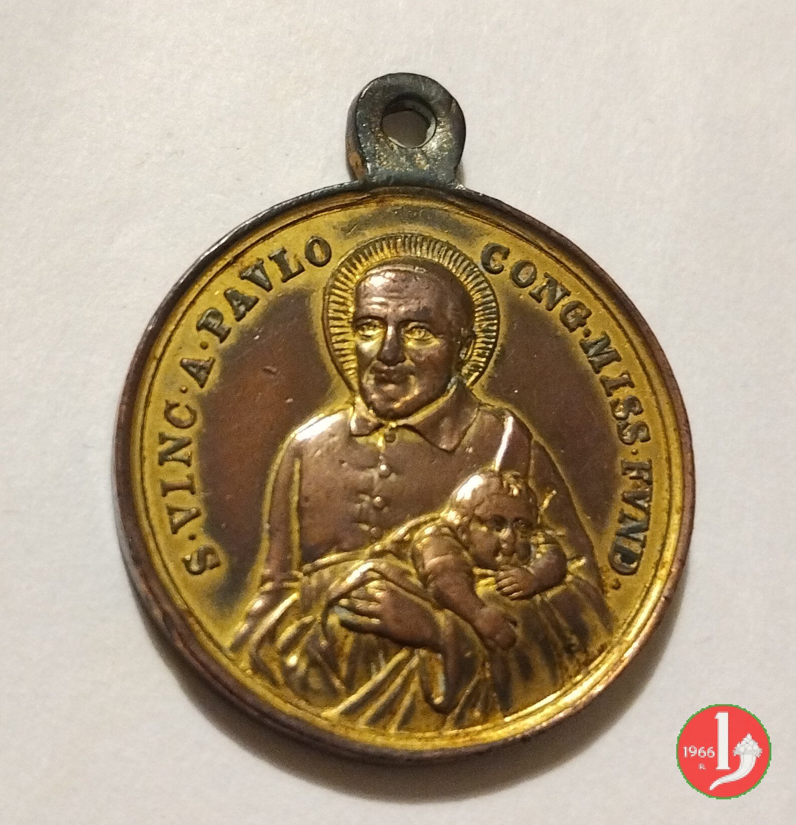 | Medaglia devozionale coniata senza data, probabilmente realizzata a ricordo della proclamazione di San Vincenzo de' Paoli a patrono universale delle Associazioni Cattoliche di Carità il 12 maggio 1885. | |||||