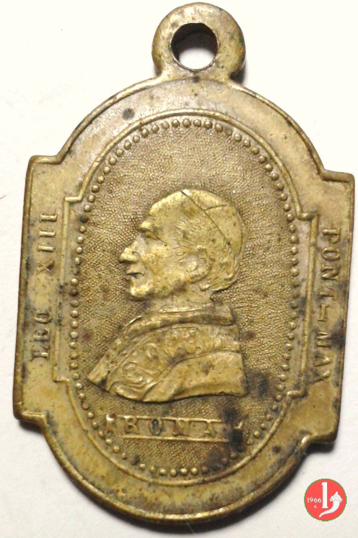 | Medaglia devozionale rettangolare bilobata coniata. | ||||