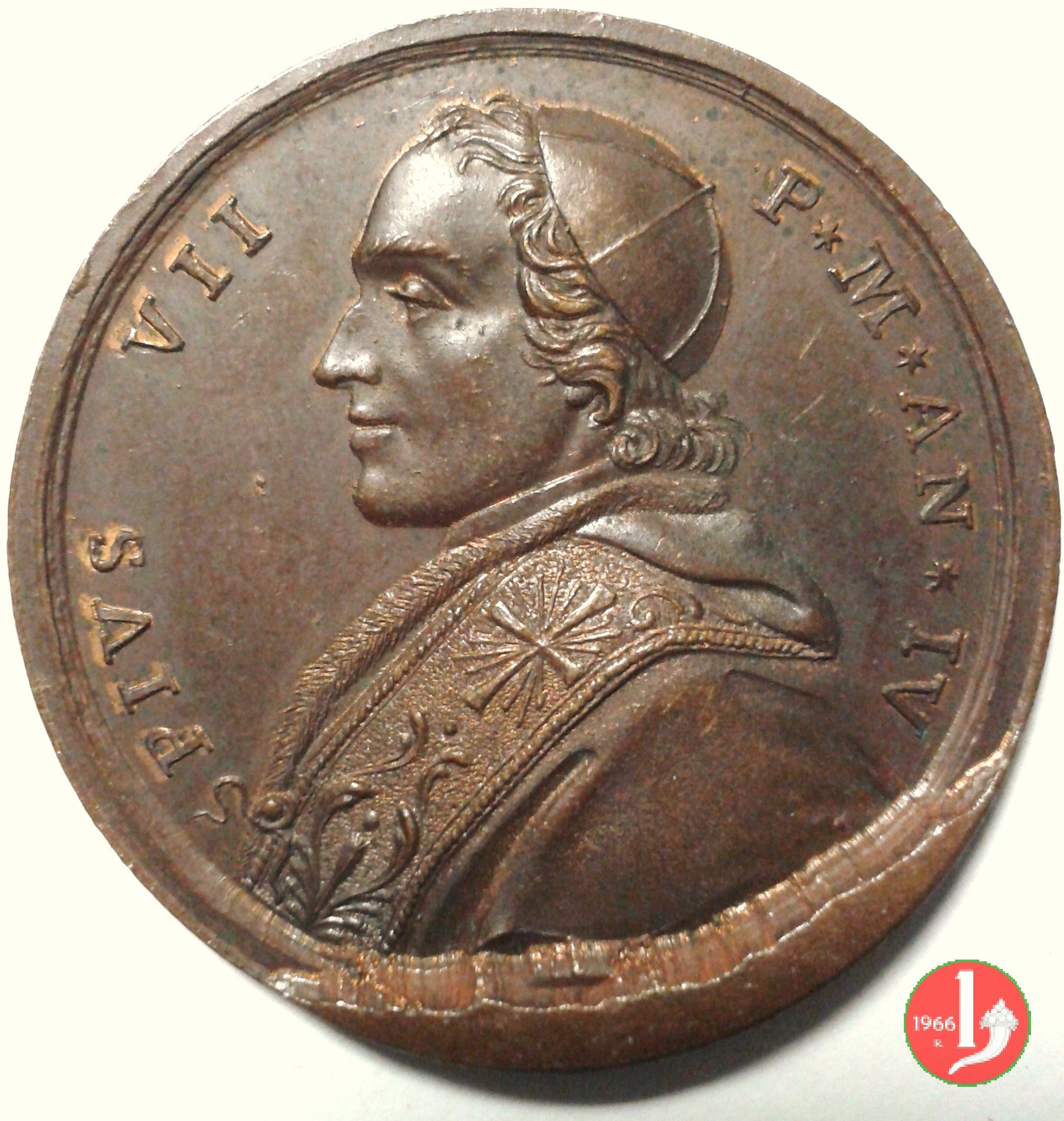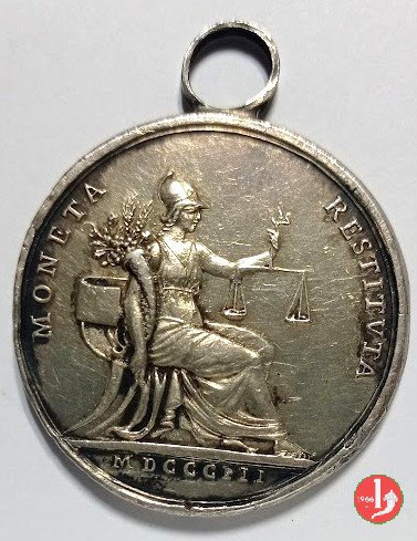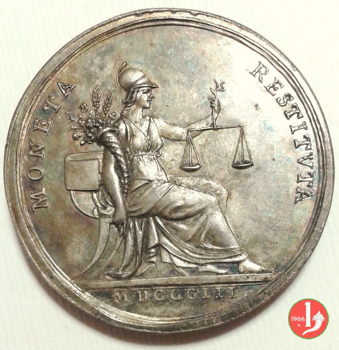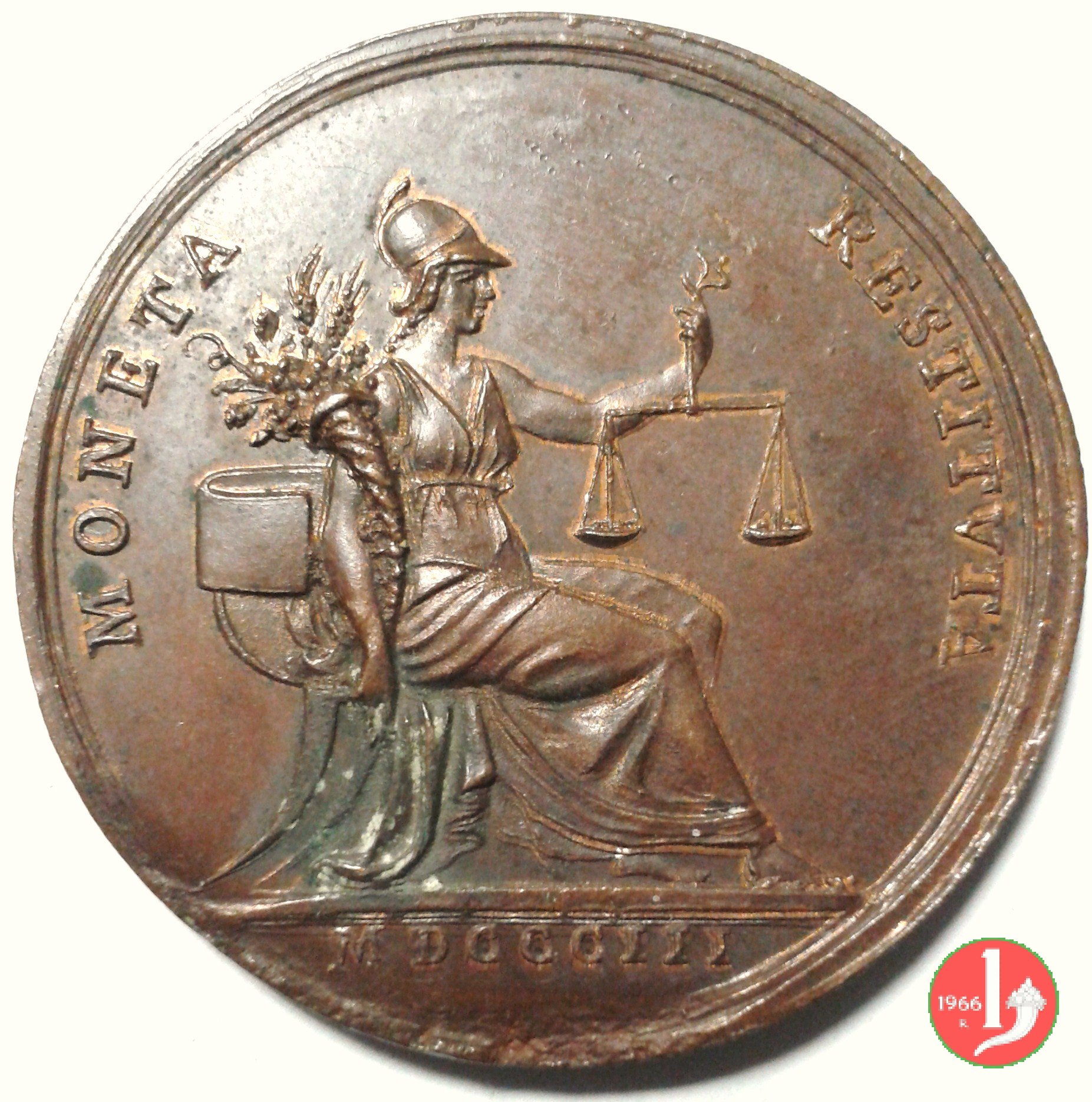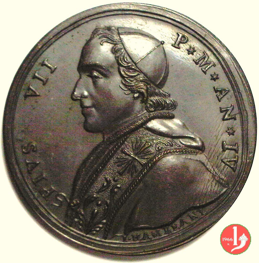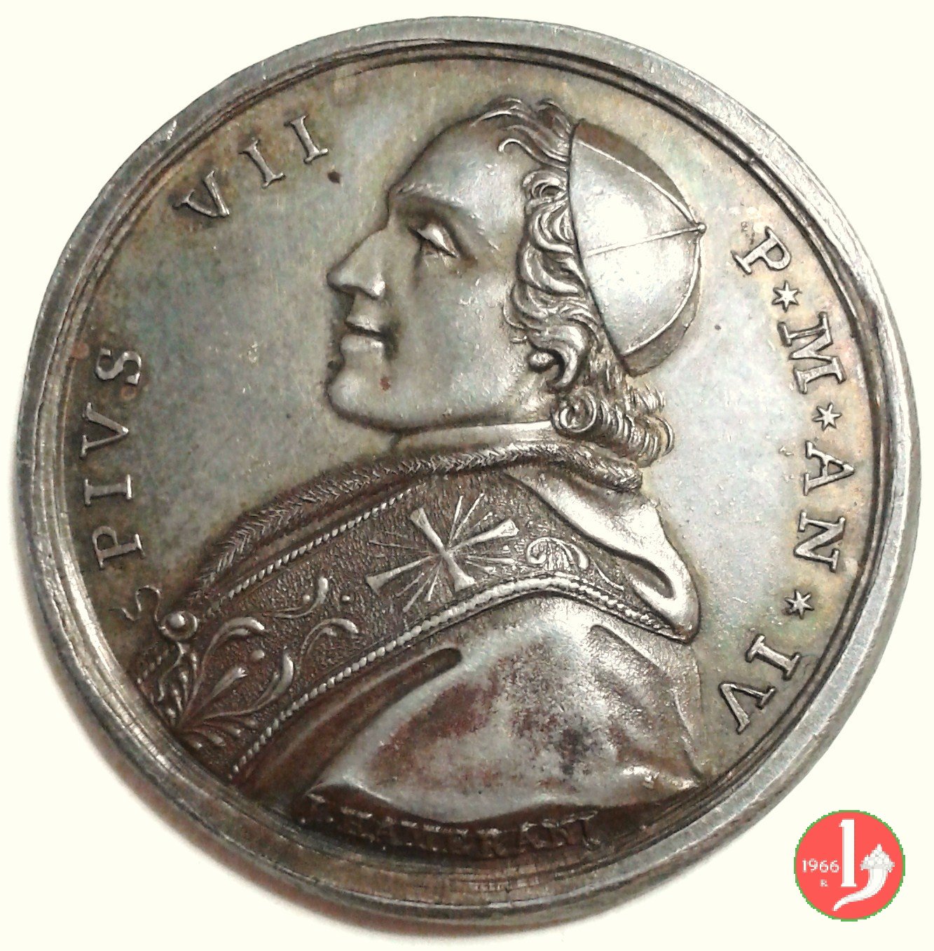Medaglia annuale coniata, emessa il 29-06-1803, per ricordare il nuovo assetto di controllo finanziario dello Stato. Vi sono due coni del diritto. L'originale ha firma J.Hamerani. La firma nel riconio successivo è I. Hamerani (vedasi Mazio 542) | |||||||