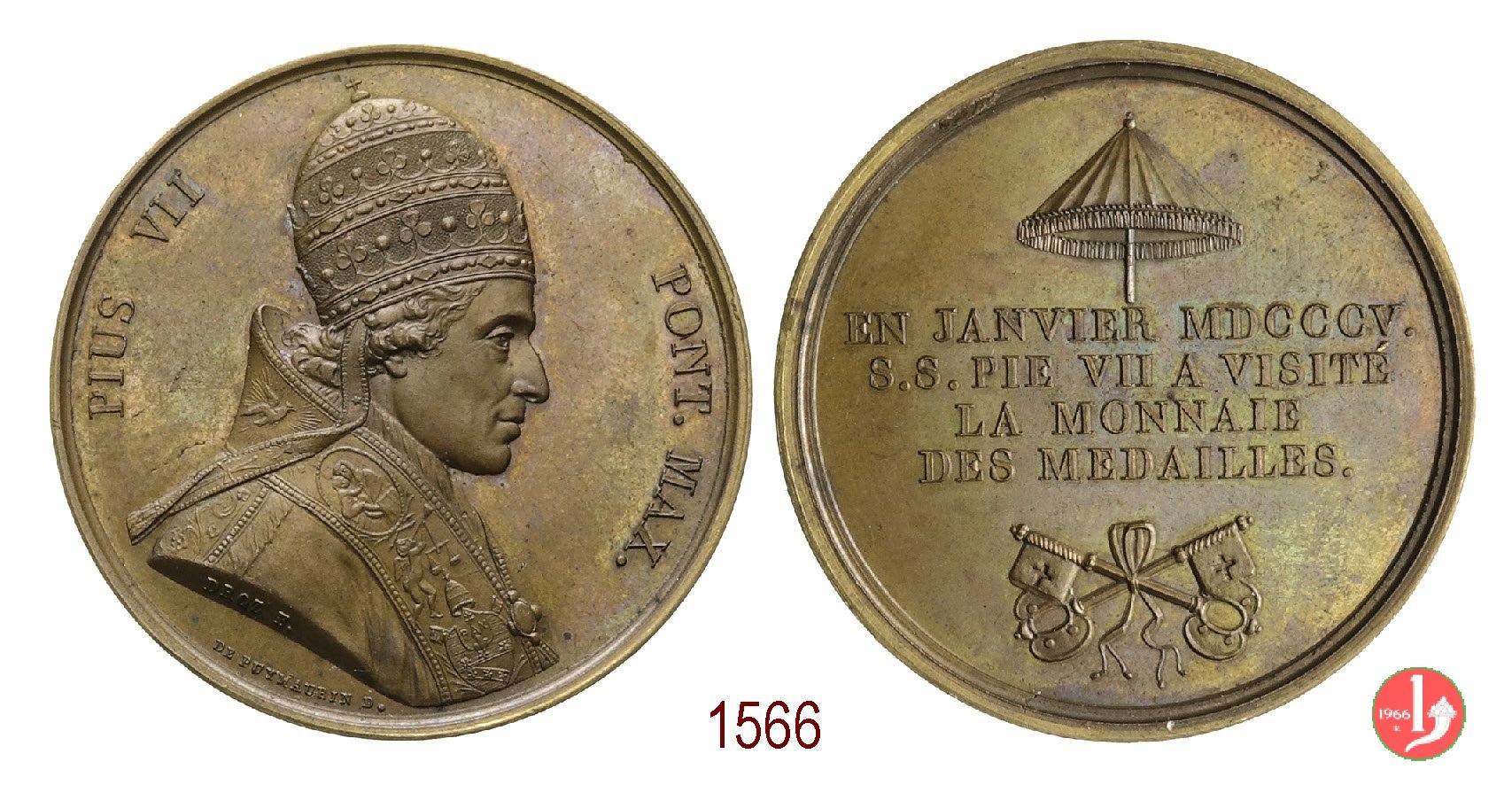 ombrellone = EN JANVIER MDCCCV = S • S. PIE VII A VISITE' = LA MONNAIE = DES MEDAILLES = chiavi decussate