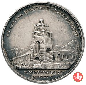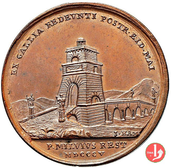 Medaglia annuale coniata, emessa il 29-06-1805, a ricordo del rientro del Papa da Parigi.