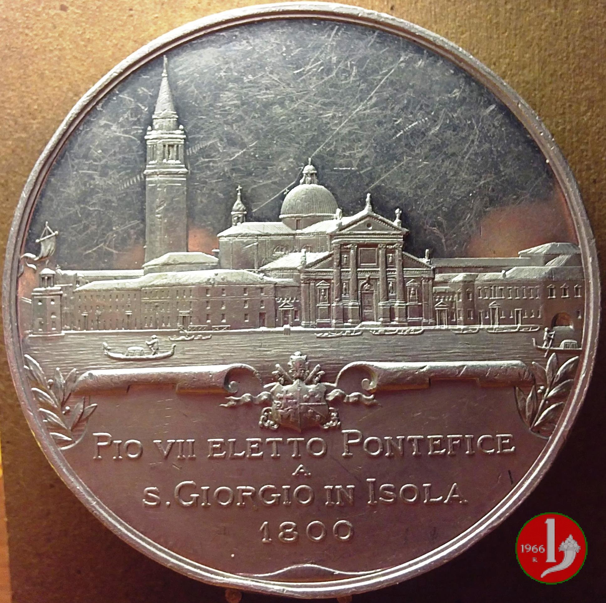 | Medaglia coniata, realizzata nel 1900 per ricordare il centenario dell'elezione di Pio VII a Venezia. | ||||||||