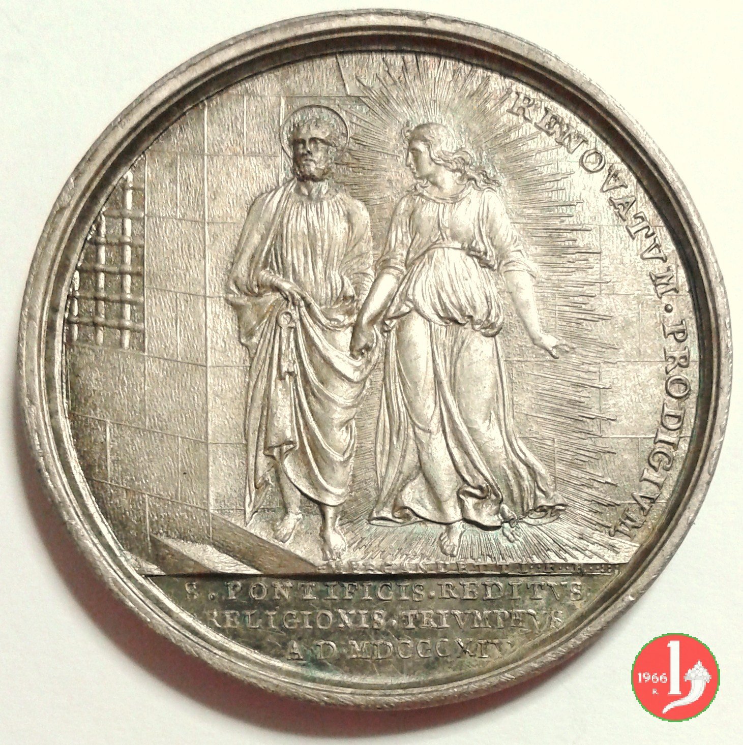 Medaglia annuale, emessa il 29-06-1814 per ricordare il rientro di Pio VII a Roma dopo la prigionia a Fontainbleu.
