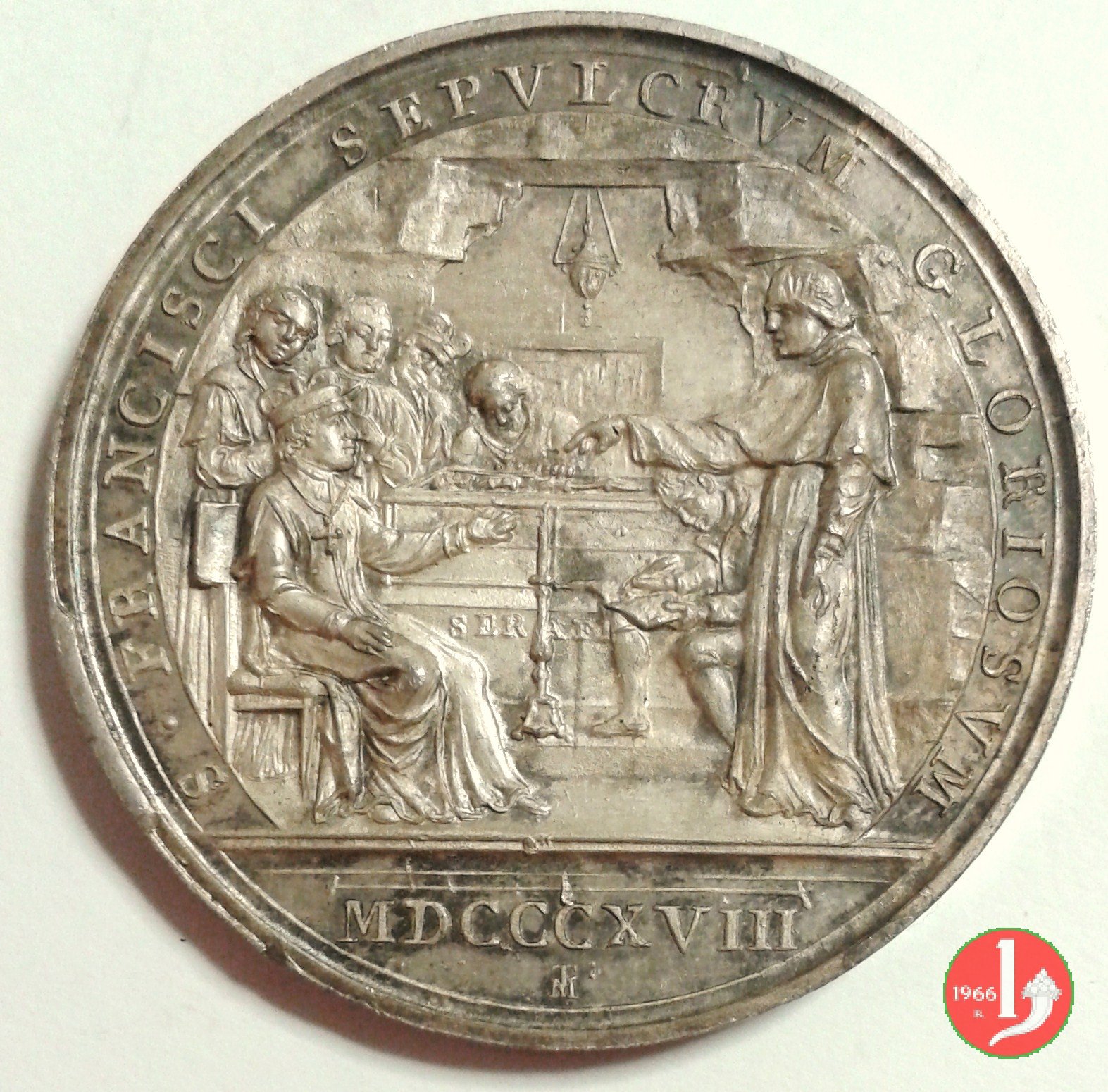 Medaglia annuale coniata, emessa il 29-06-1821 per ricordare il ritrovamento e il riconoscimento dello scheletro di San Francesco d'Assisi.