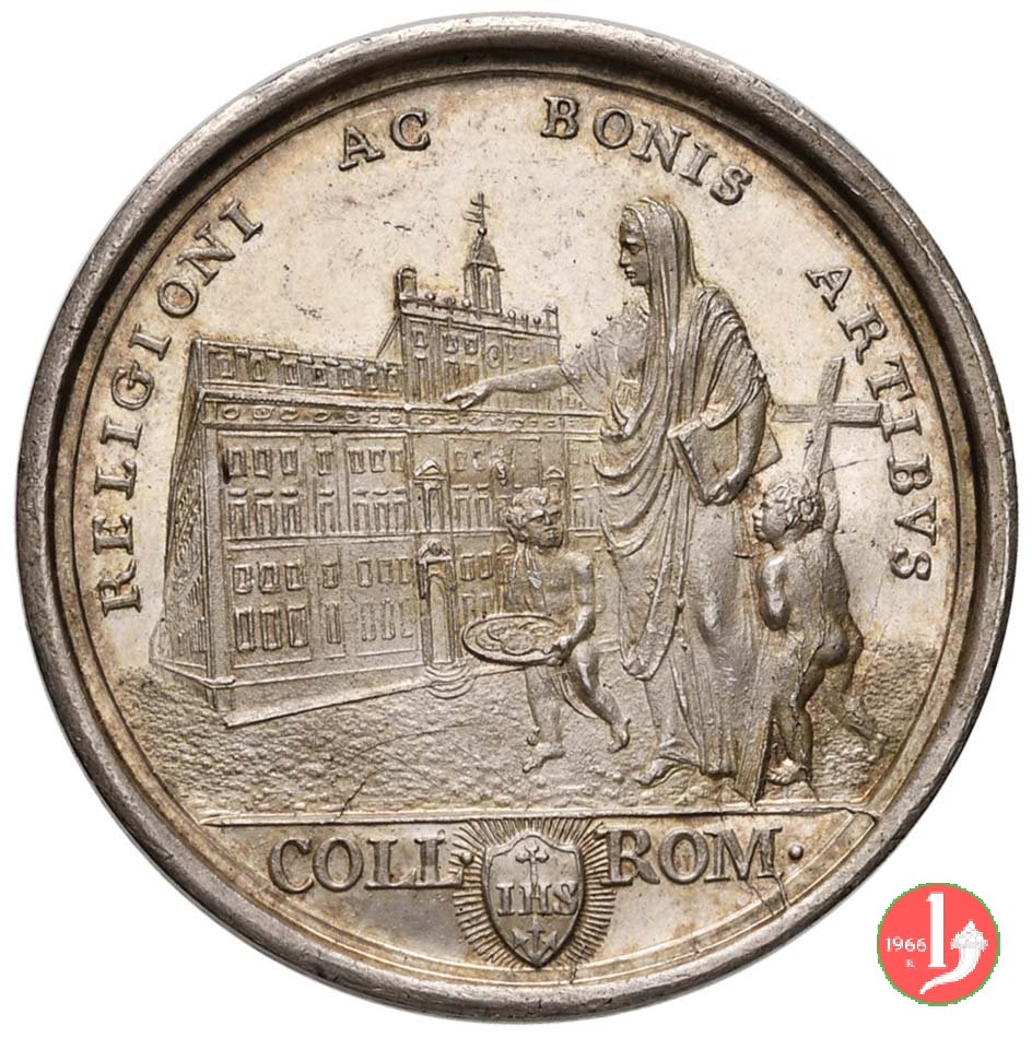 Medaglia premio coniata, realizzata probabilmente il 17-05-1824 a ricordo della restituzione della direzione del Collegio Romano alla Compagnia del Gesú e per essere distribuita agli alunni meritevoli.