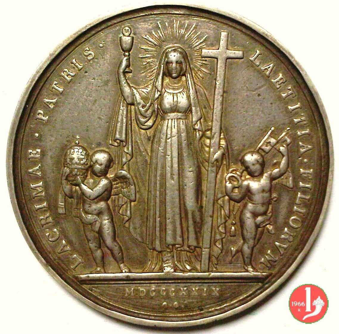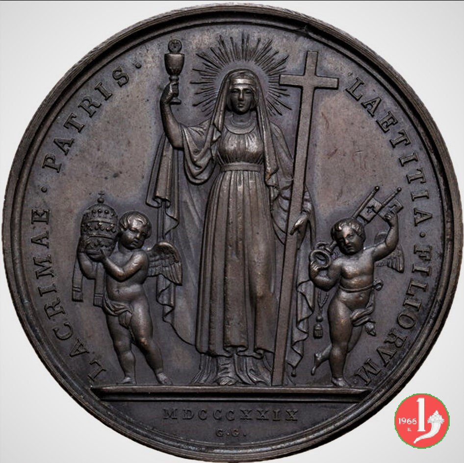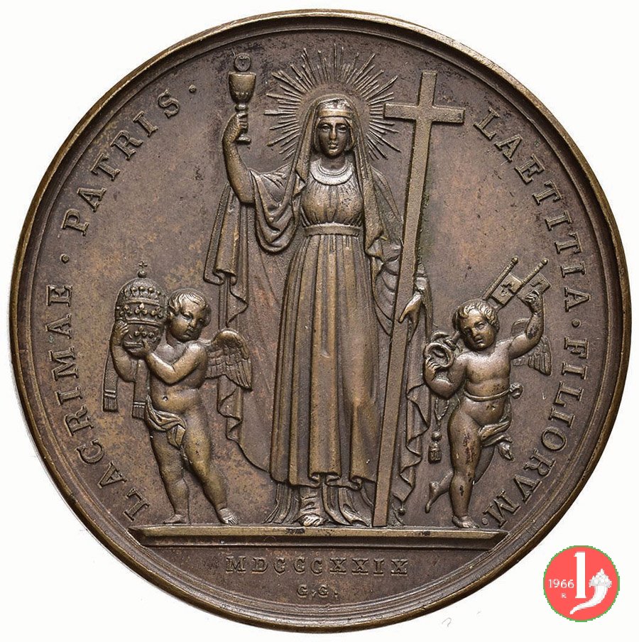 Medaglia annuale coniata, emessa il 29-06-1829 per ricordare l'elezione al Pontificato.