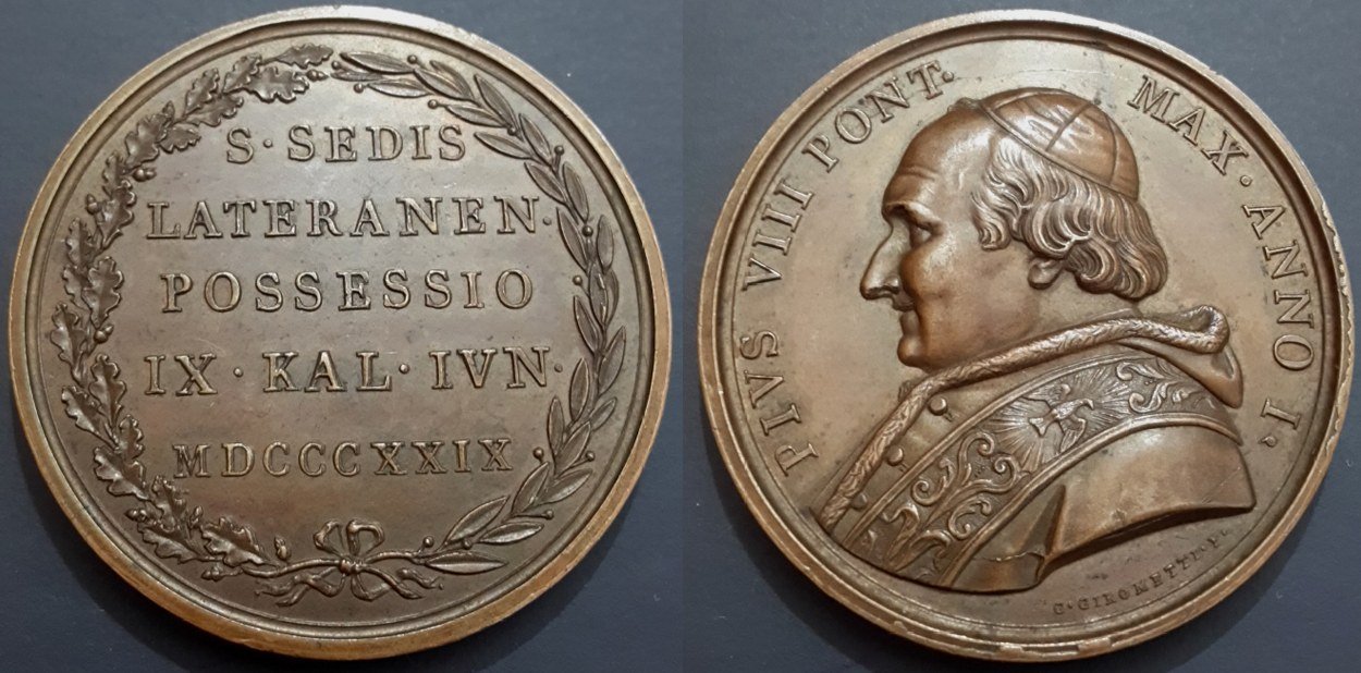 | Medaglia straordinaria coniata, emessa il 24-05-1829, per ricordare la cerimonia di presa del Possesso della Basilica di S. Giovanni in Laterano. | |||||||