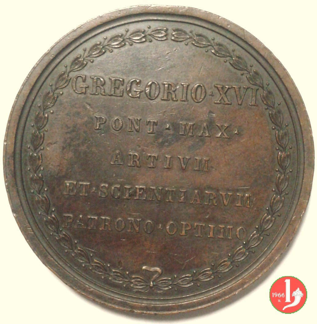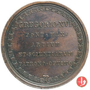 in ghirlanda di ulivo: GREGORIO • XVI = PONT • MAX • = ARTIVM ET SCIENTARVM = PATRONO OPTIMO