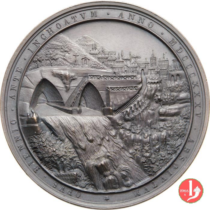| Medaglia straordinaria coniat, emessa il 07-10-1835 a ricordo delle opere eseguite per la deviazione dell'Aniene. | |||||||