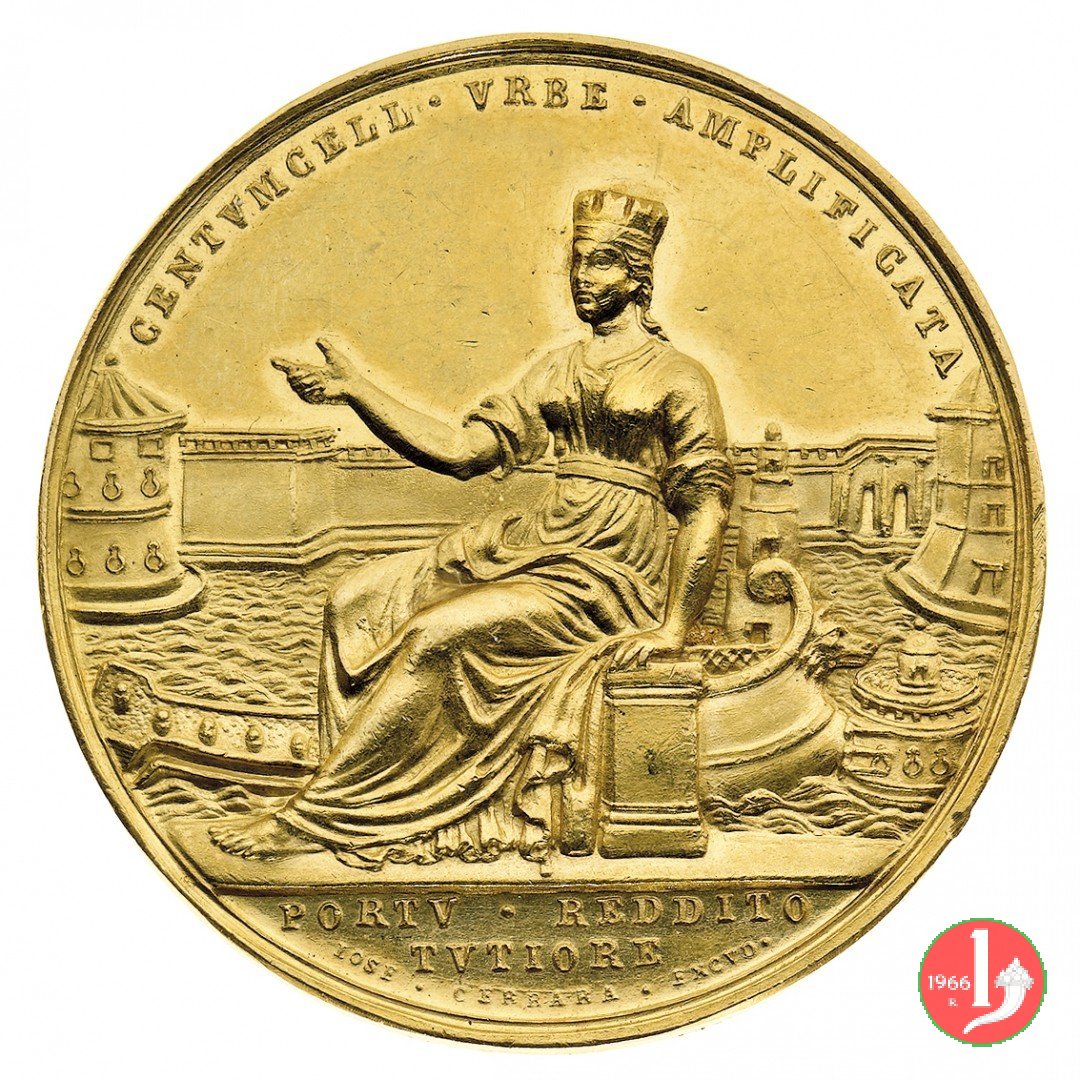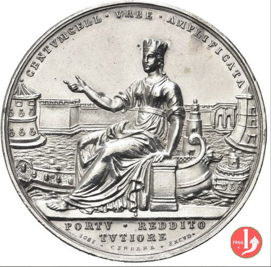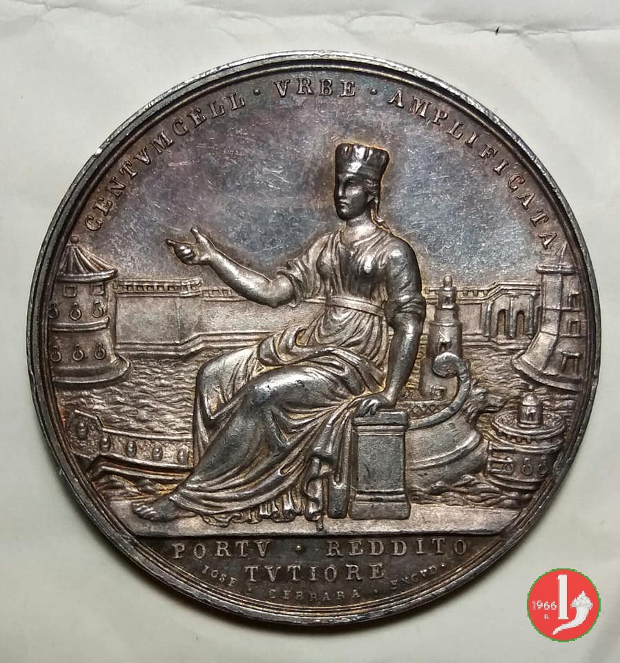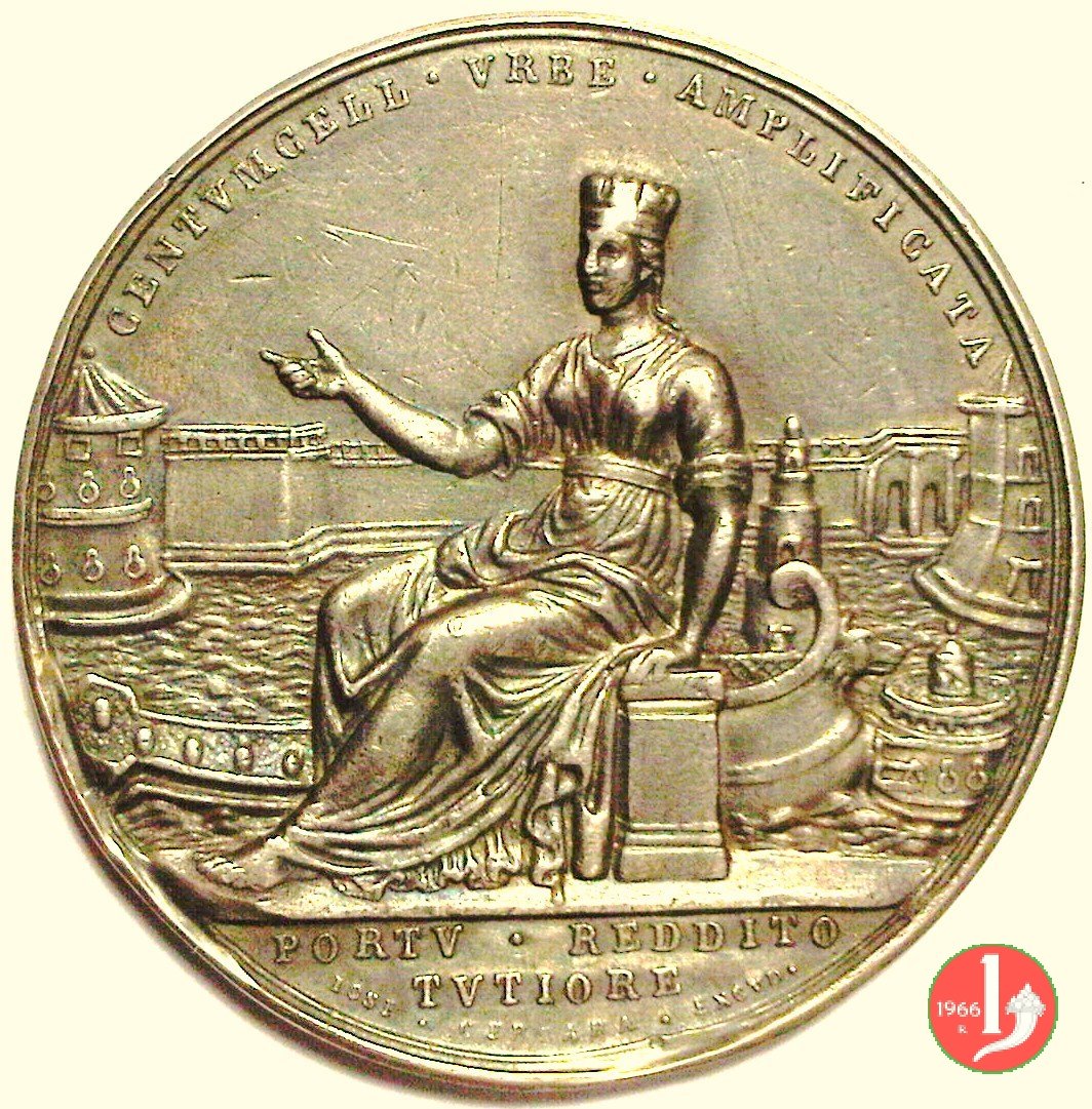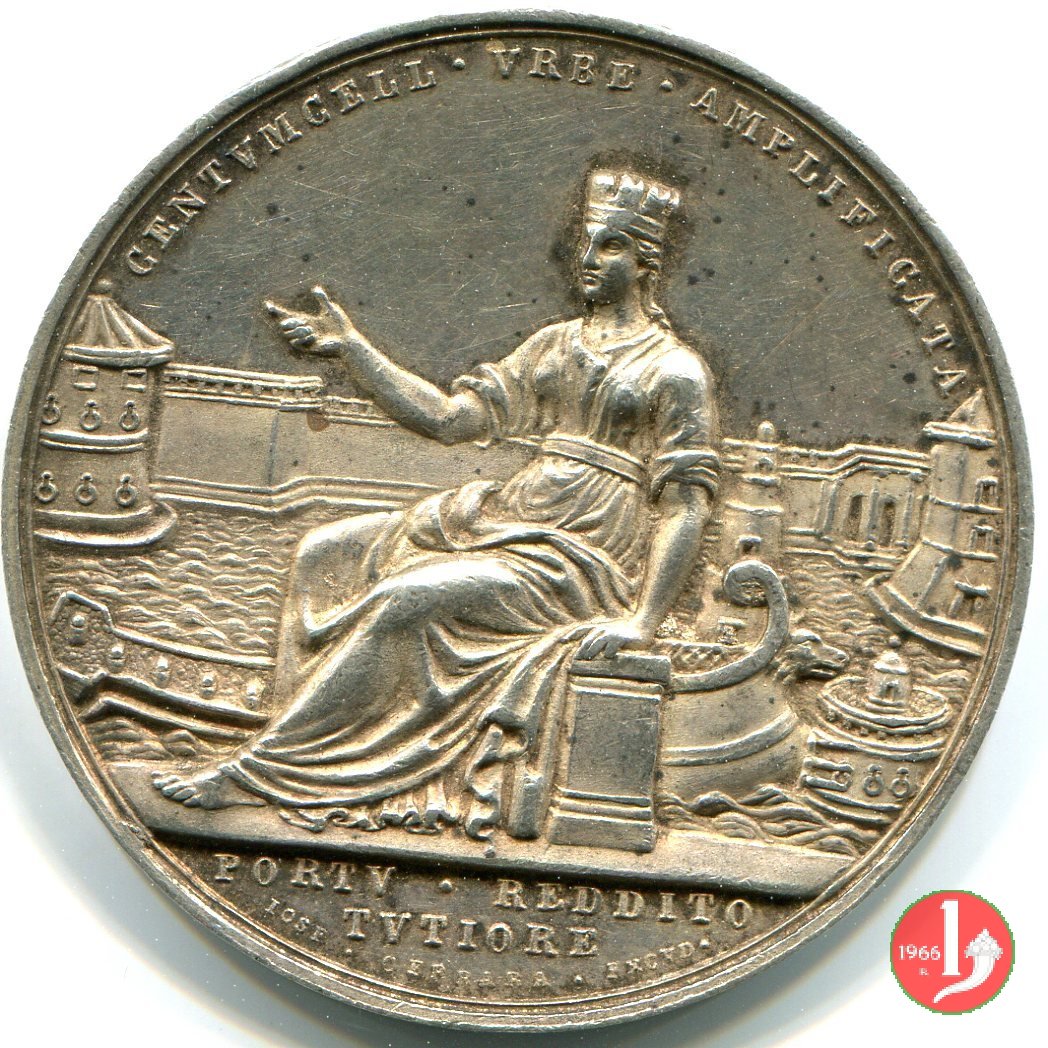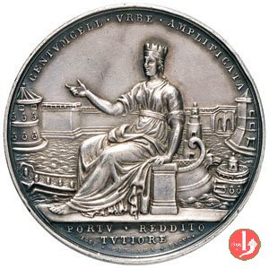 Medaglia annuale coniata emessa il 29-06-1836 a ricordo dei lavori eseguiti al Porto di Civitavecchia.