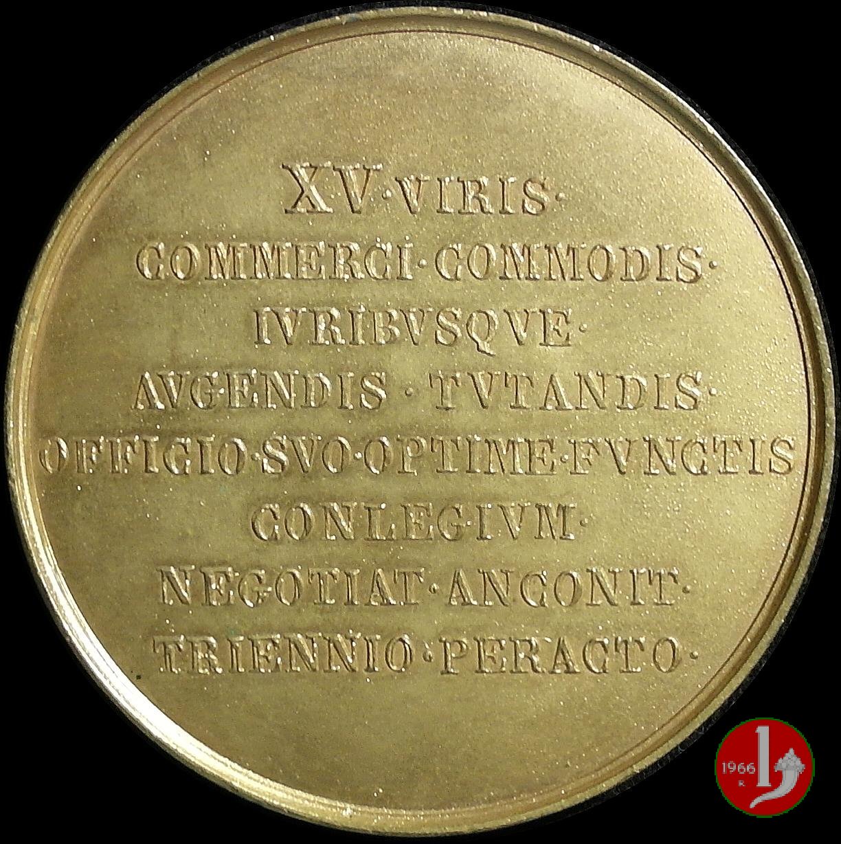 Medaglia premio coniata e conferita, per il servizio triennale svolto presso l'Unione commercianti di Ancona, ai quindici membri della giunta del Commercio.