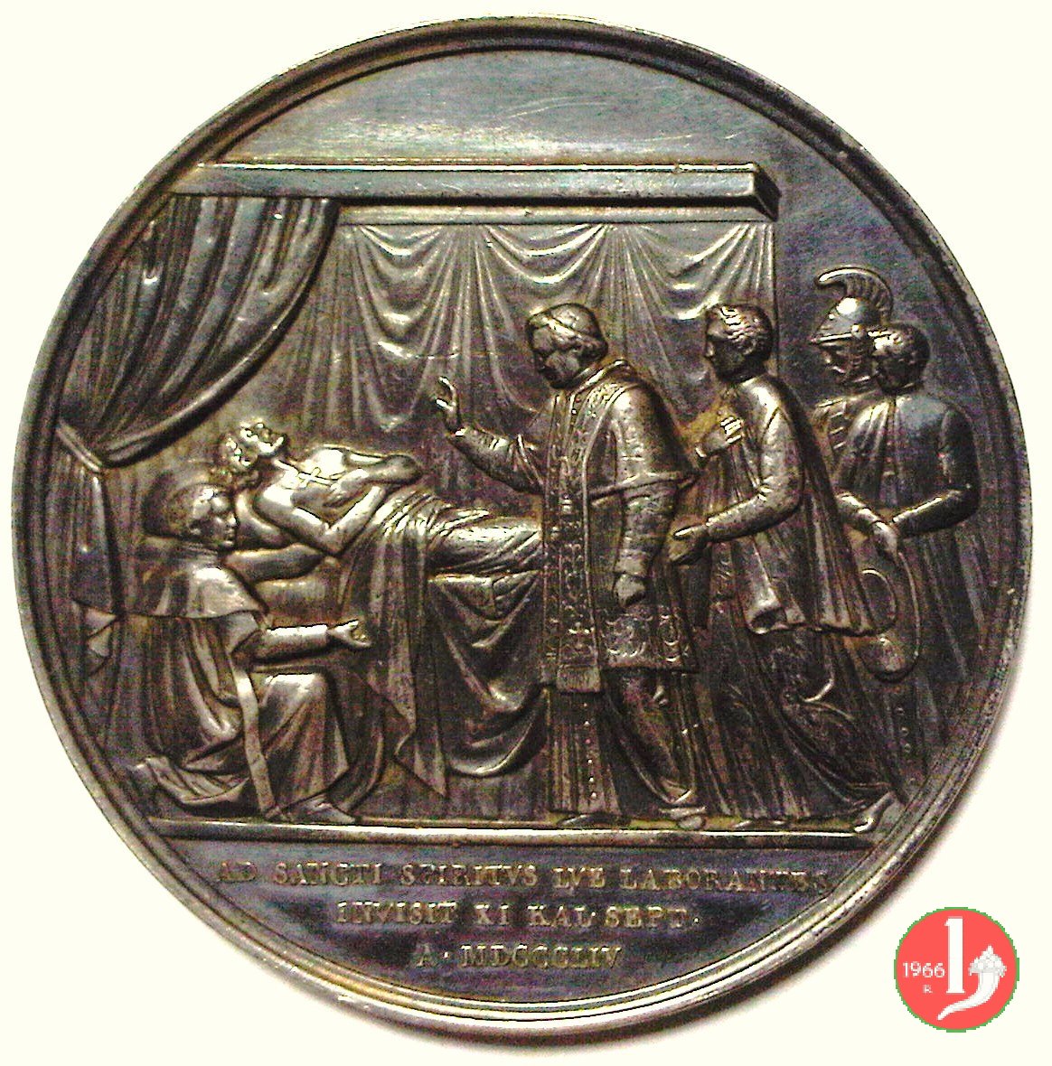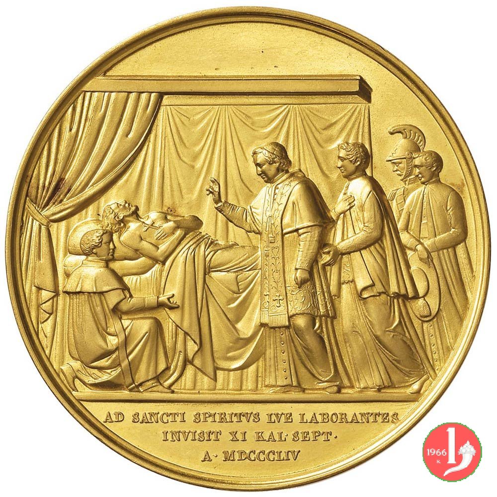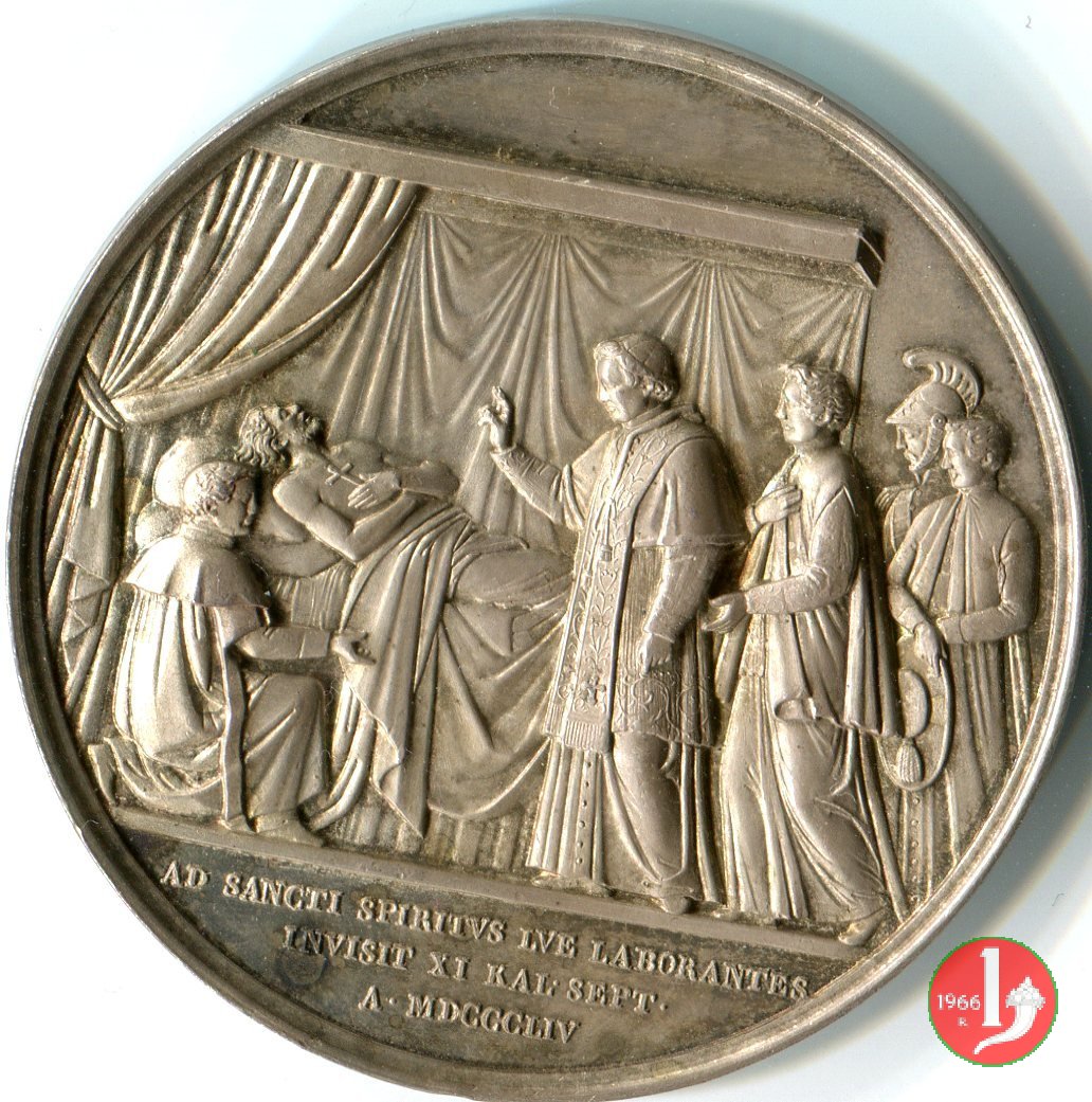 Medaglia annuale emessa il 29-06-1855 in ricordo della visita del Papa all'ospedale Romano di Santo Spirirto di Sascia.