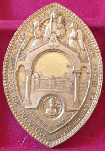 | Medaglia ogivale coniata, emessa il 09-07-1855, per ricordare la posa della prima pietra nel Seminario di Sant'Ireneo a Lione. | |||||