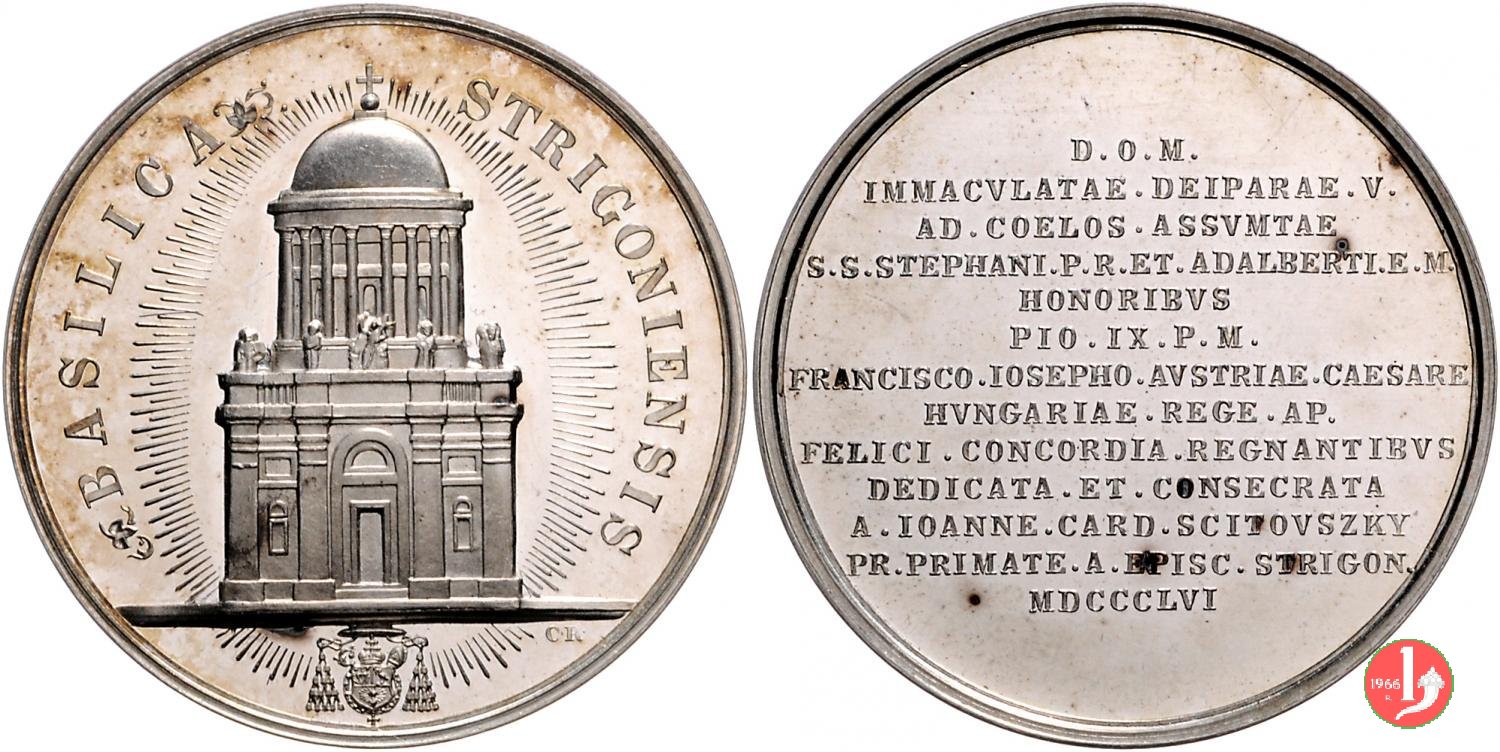 Medaglia straordinaria coniata a cura del Card. Principe Primate Giovanni Scitovszky a ricordo della consacrazione della nuova Basilica di Gran (o Esztergom), la ricostruzione fu iniziata sotto il Pontificato di Pio VII (vedi P103). Per notizie sulla Basilica - Vedi anche: [link | ||||||