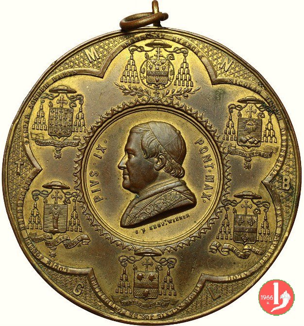 nel cerchio interno: PIVS • IX • _ PONT • MAX busto a sx con berretto, mozzetta e stola