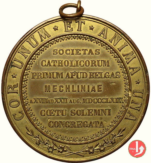 nella conice interna: SOCIETAS = CATHOLICORUM = PRIMUM APUO BELGAS = MECHLINIAE = A XVIII AD XXII AUG. MDCCCLXIII = COETU SOLEMNI = CONGREGATA
