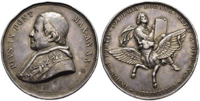| Medaglia premio annuale coniata, emessa nel 1865, per l'Accademia di San Luca. | ||||||