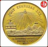 | Medaglia coniata a cura del Conte massone Giuseppe Ricciardi emessa in segno di protesta per l'apertura del Concilio Vaticano e a ricordo dell'Anticoncilio convocato a Napoli. | |||||||