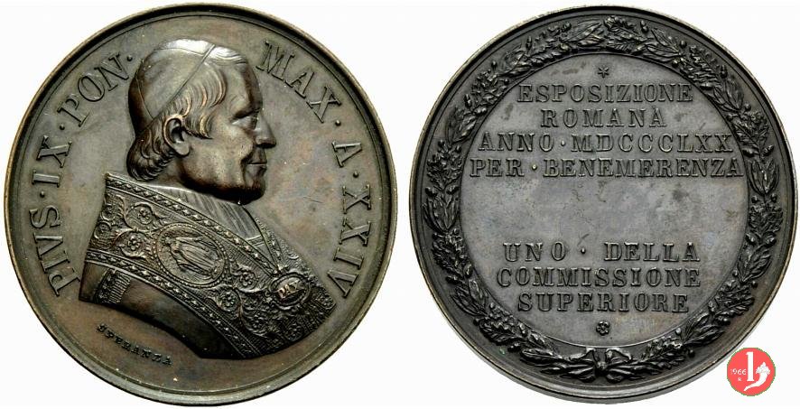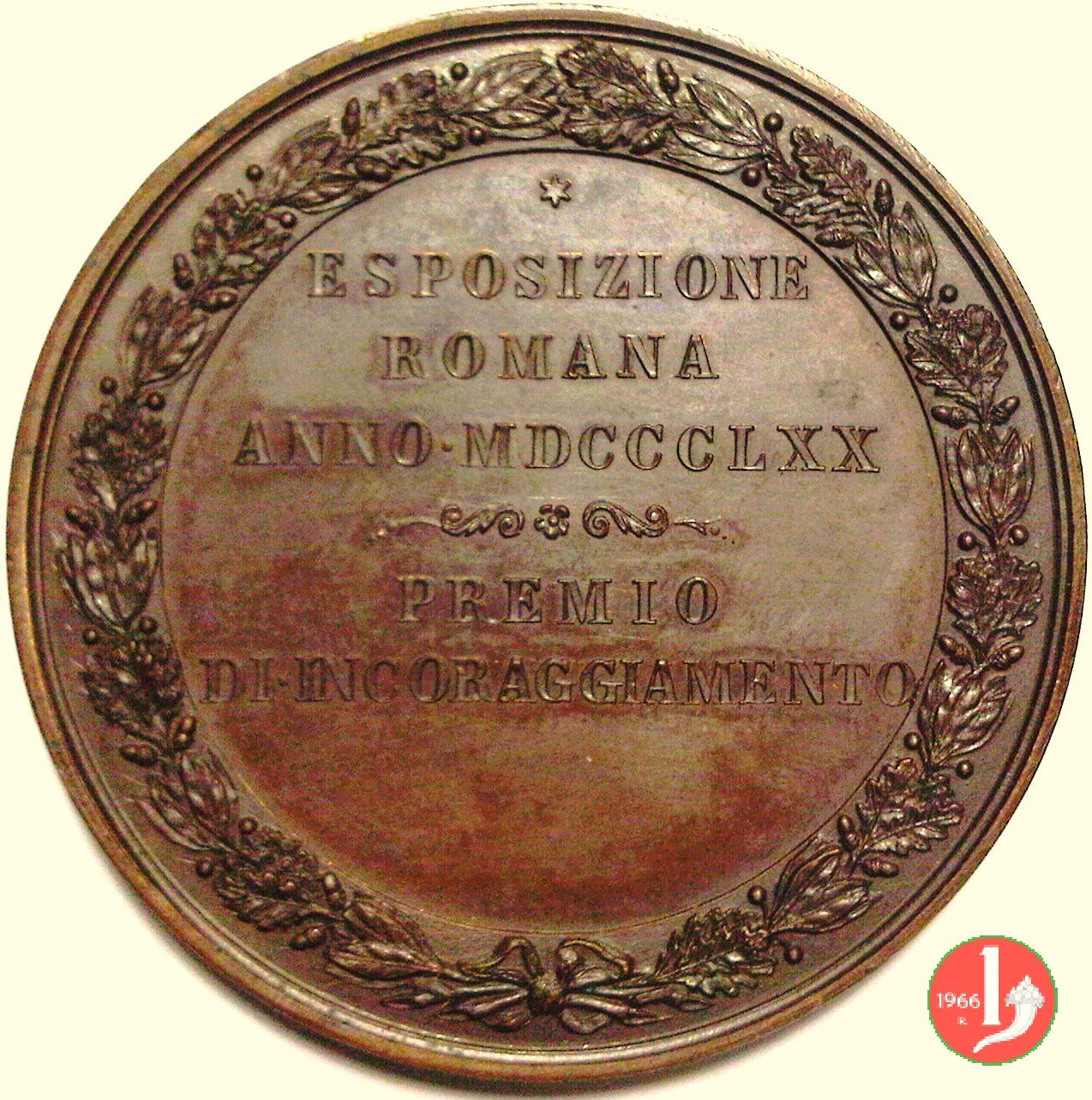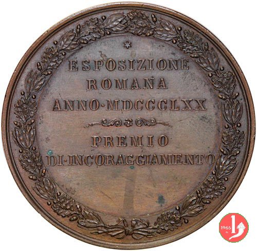 nel campo entro corona di foglie d'alloro e quercia: ESPOSIZIONE = ROMANA = ANNO • MDCCCLXX = PREMIO DI INCORAGGIAMENTO