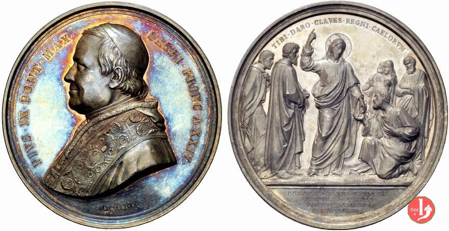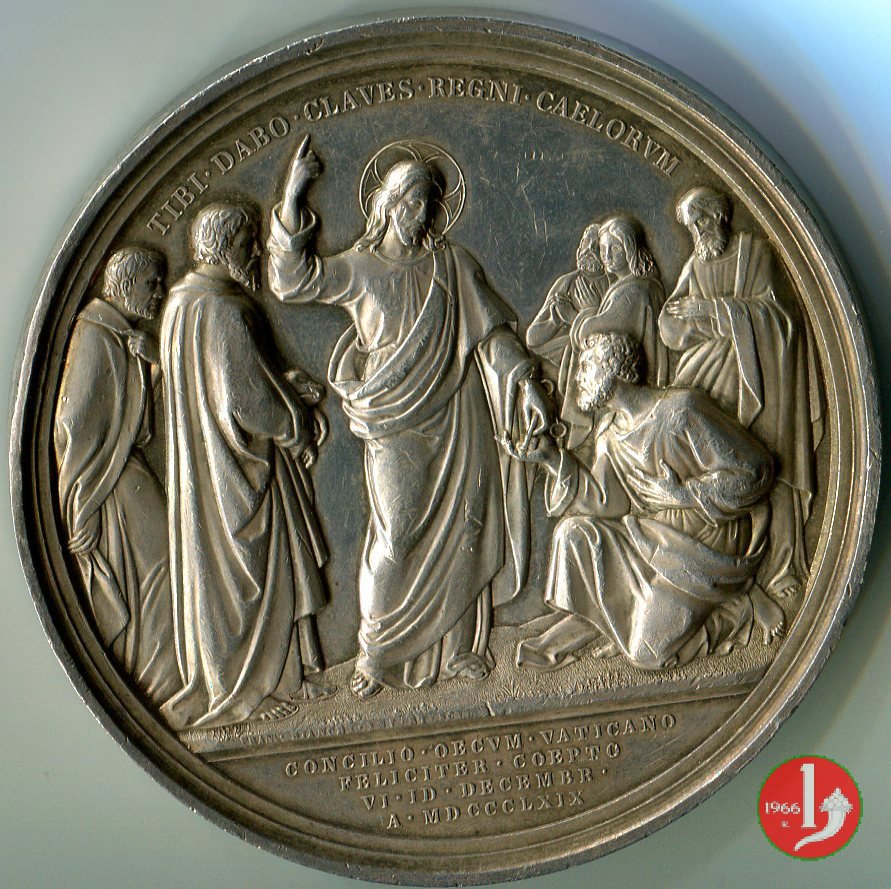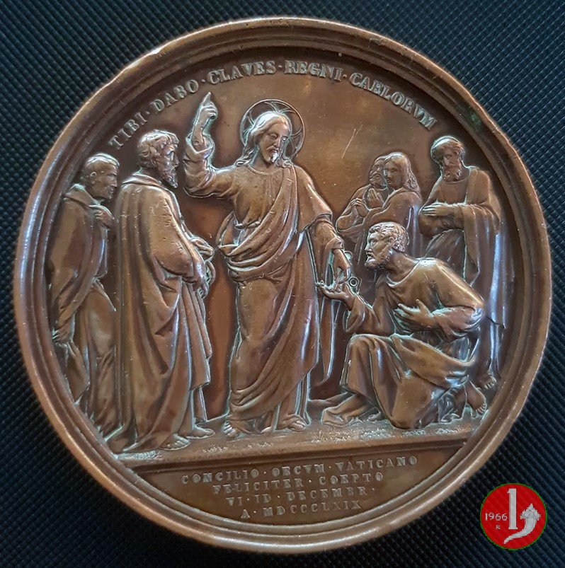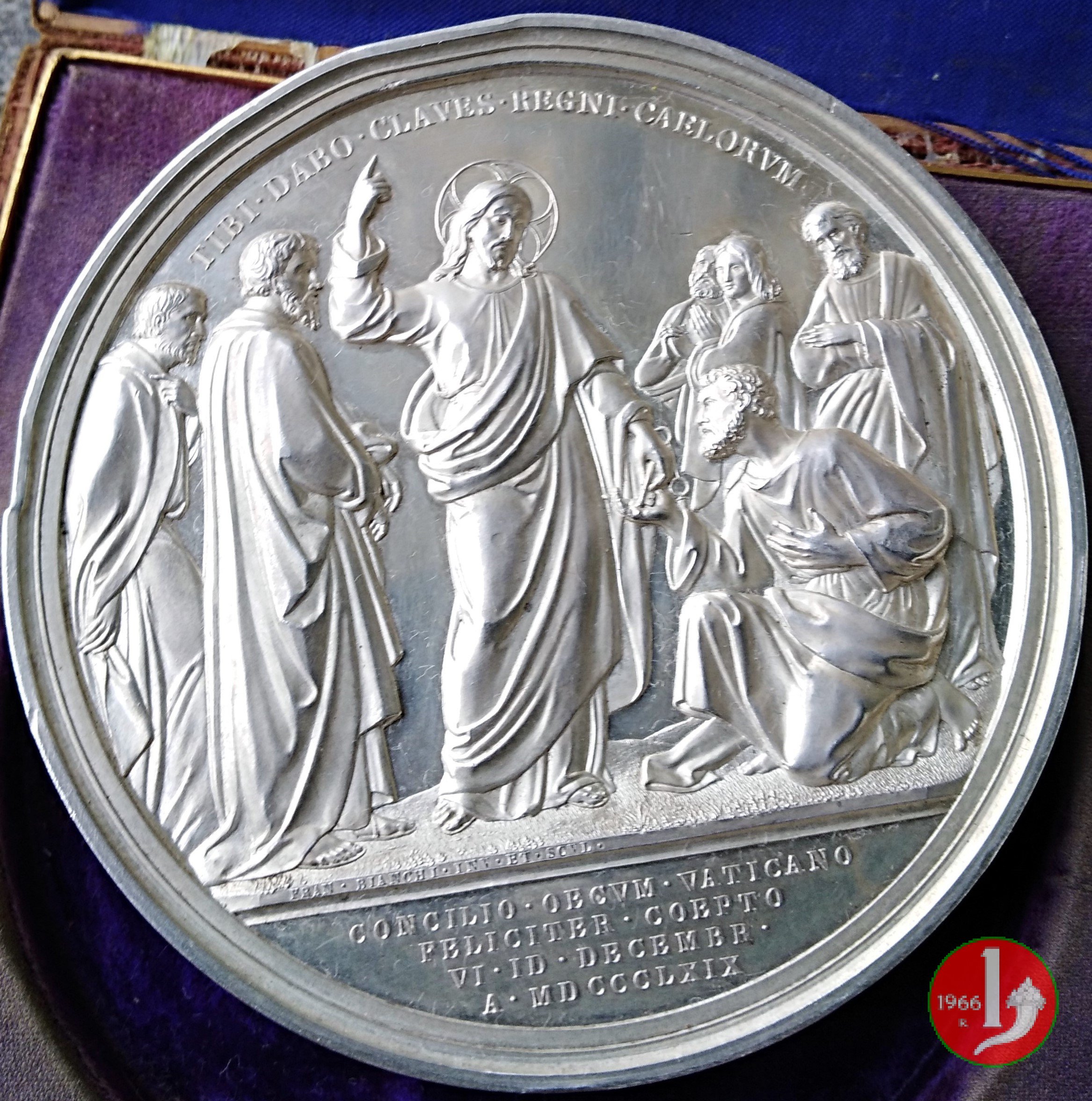 Medaglia straordinaria coniata, realizzata con fondo lucido, emessa il 08-12-1869 a ricordo dell'apertura del Concilio Ecumenico Vaticano.