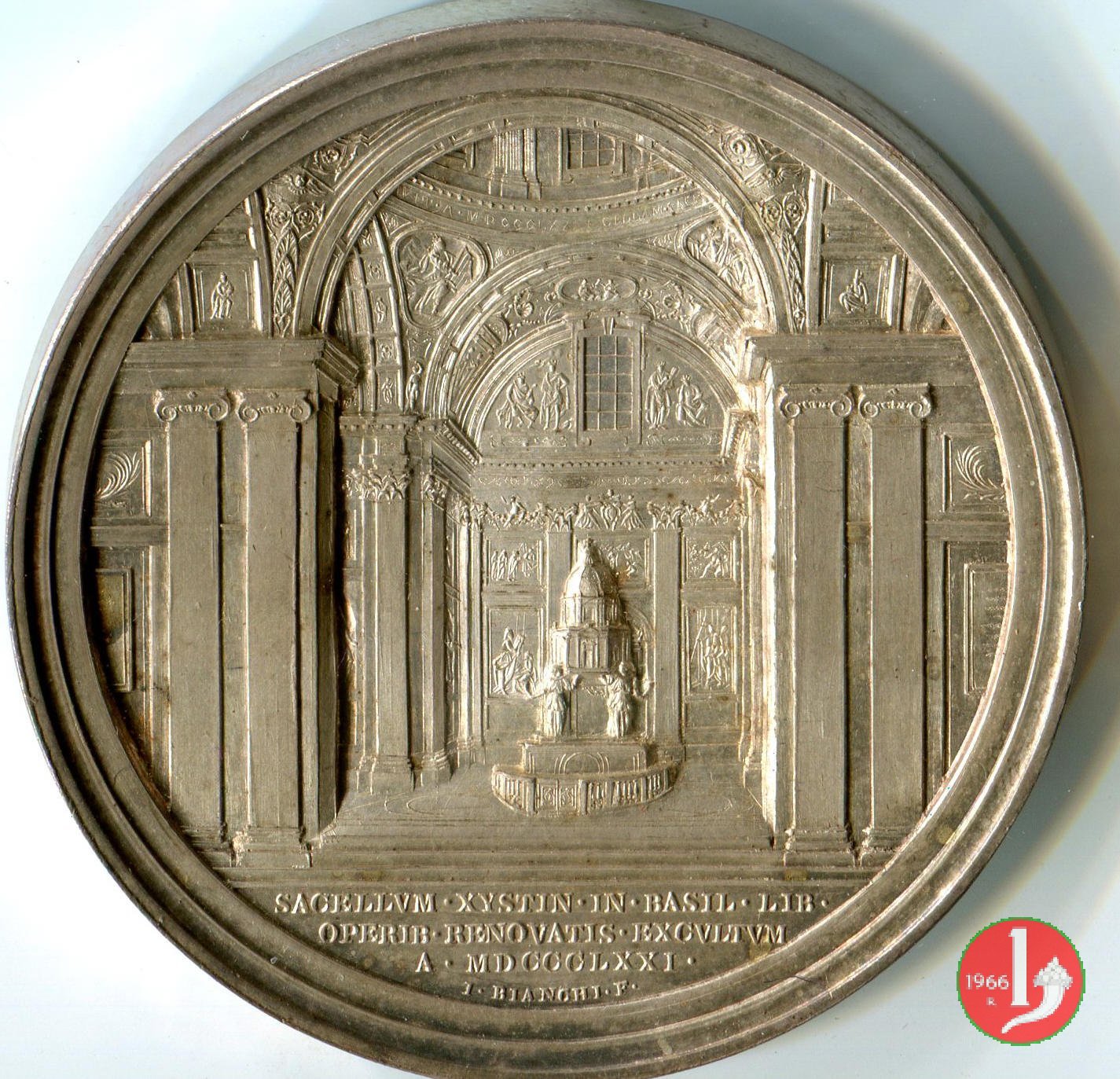 Medaglia annuale coniata, emessa il 29-06-1872 a ricordo dei lavori di restauro della Cappella Sistina, posta nella Basilica di Santa Maria Maggiore.